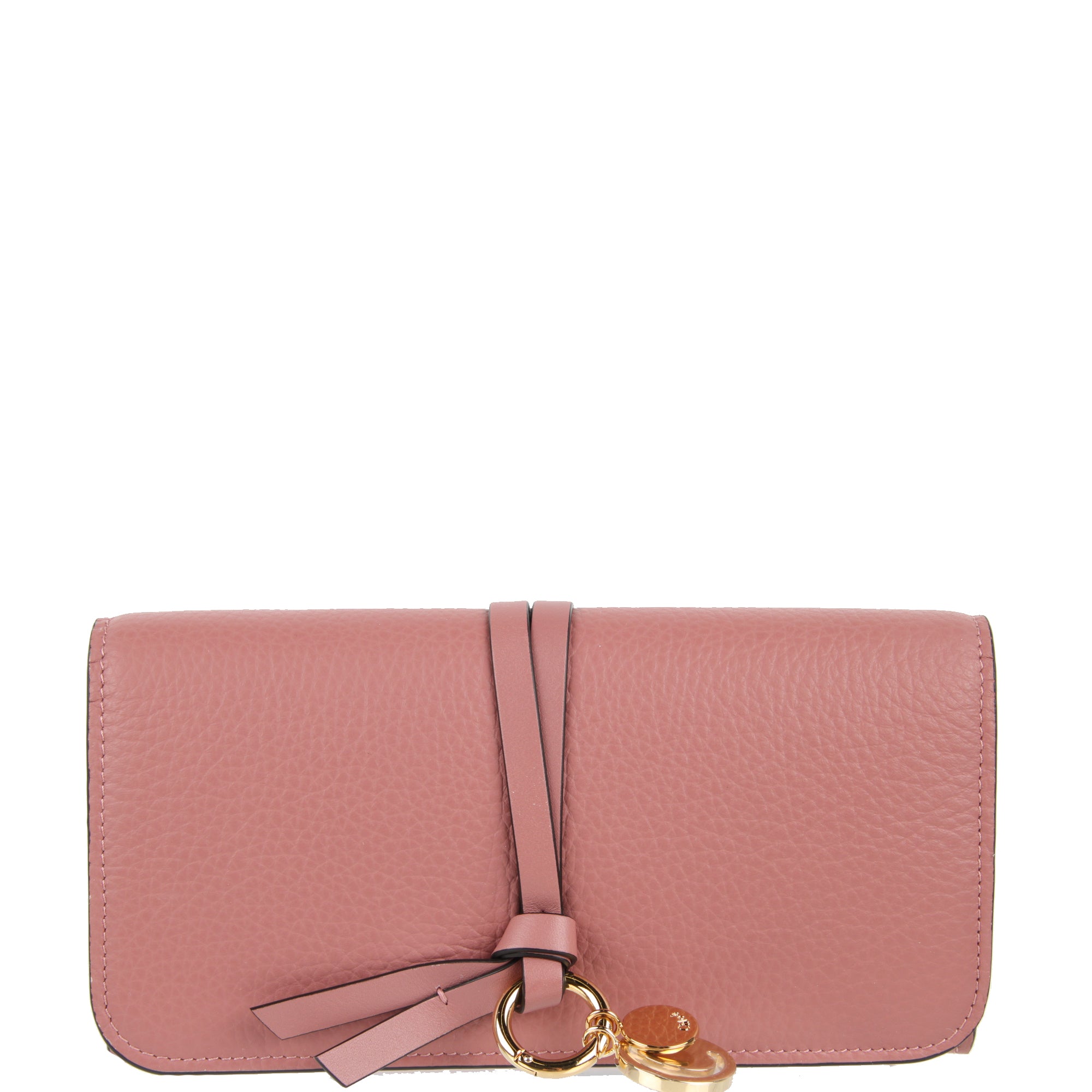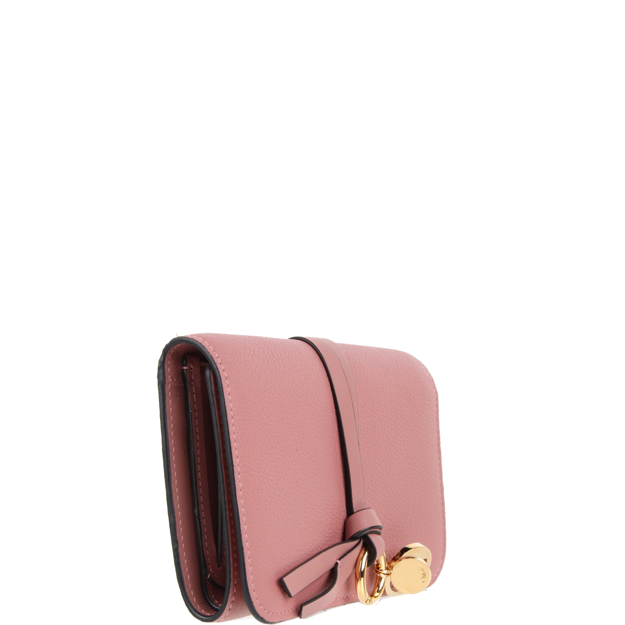 Chloe's Alphabet flap wallet in small grain & smooth calfskin. Featuring 1 main compartment, 1 flat pocket, 1 back outside flat pocket, 12 card slotsand 1 zipped pocket. "Beige rosé" nappa lining.