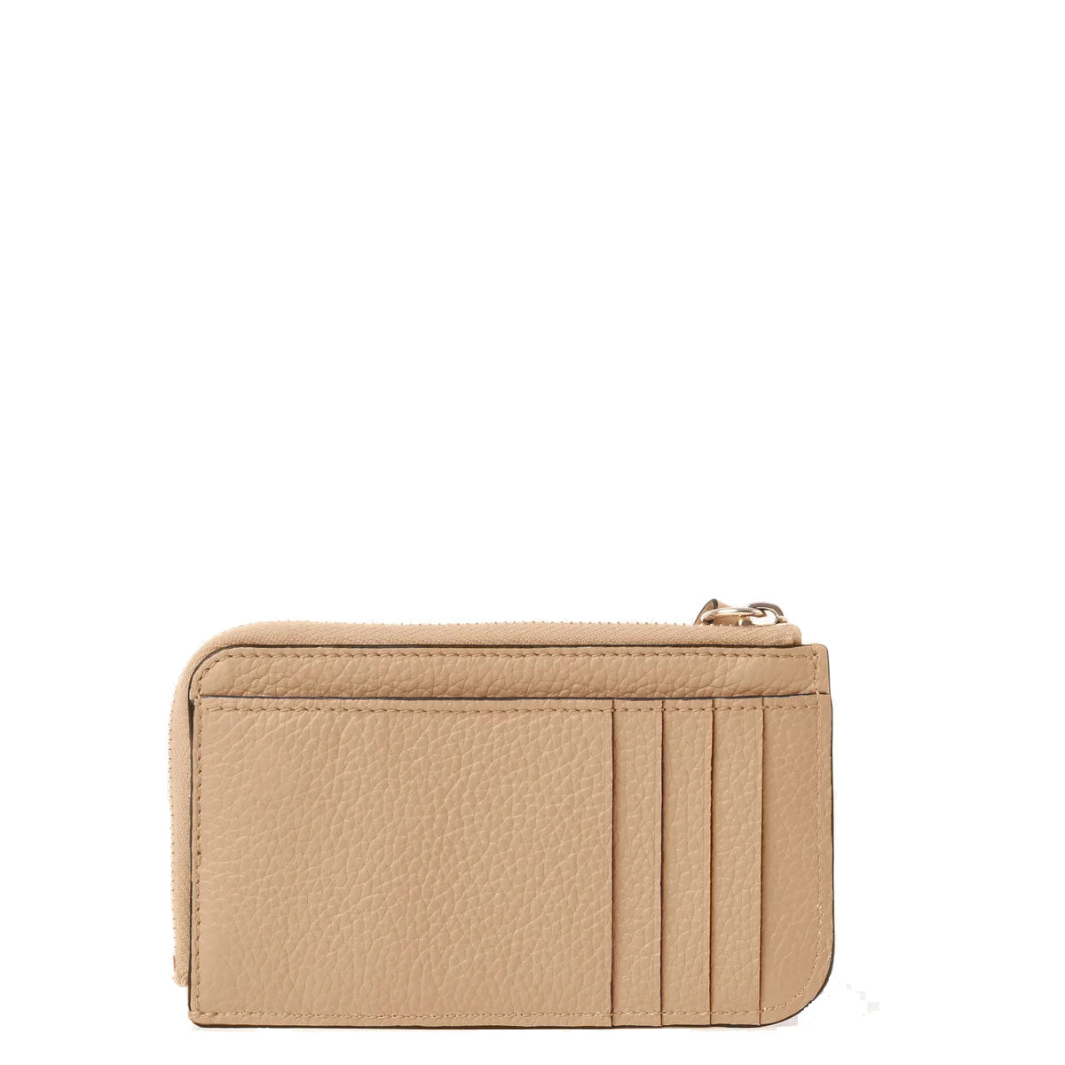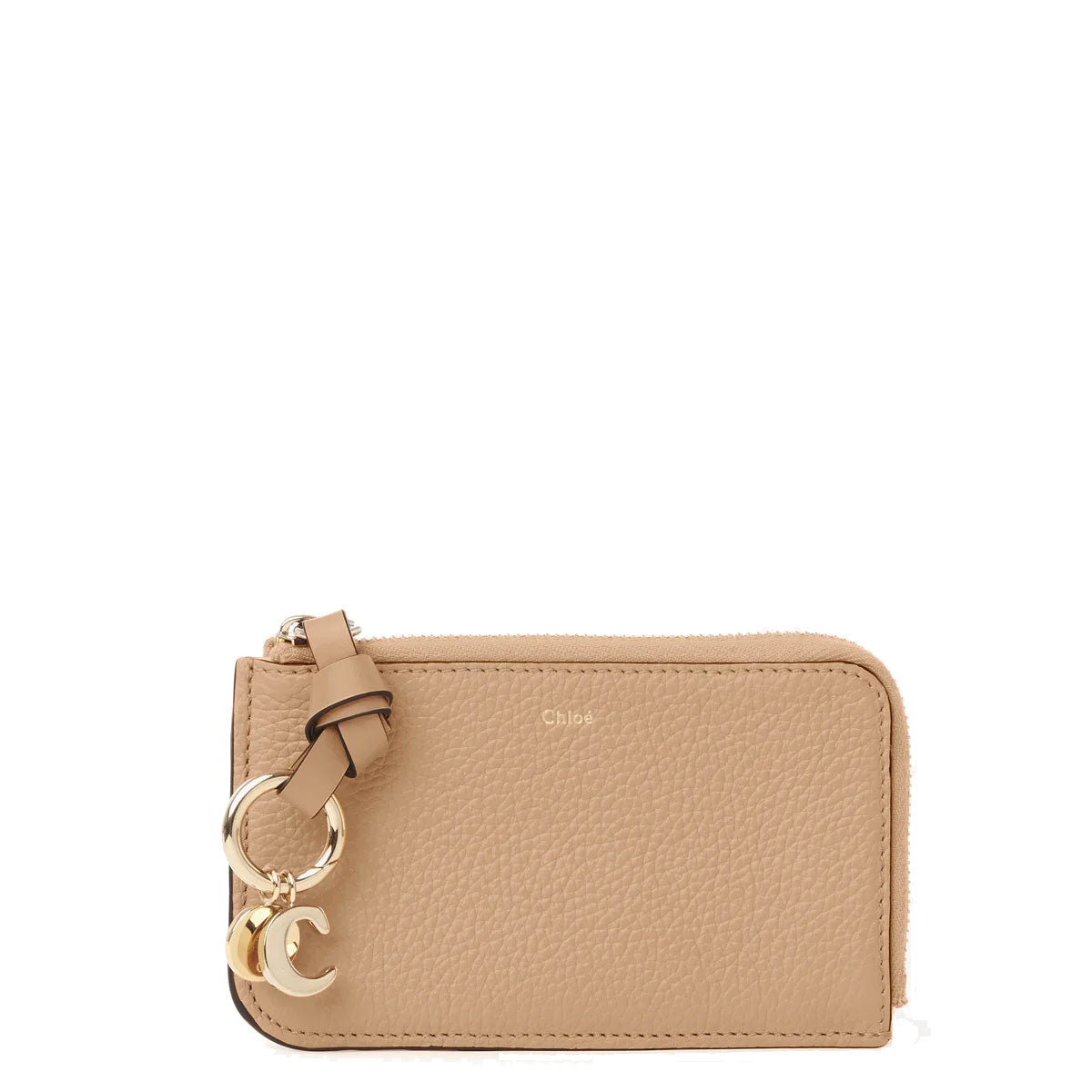 Chloé's Alphabet zip card holder in grained leather. Featuring 1 bill/note compartment, 6 card slots and curved zip compartment. Finished with signature gold tone logo disc and cut out 'C' charm and gold hot-stamp logo.