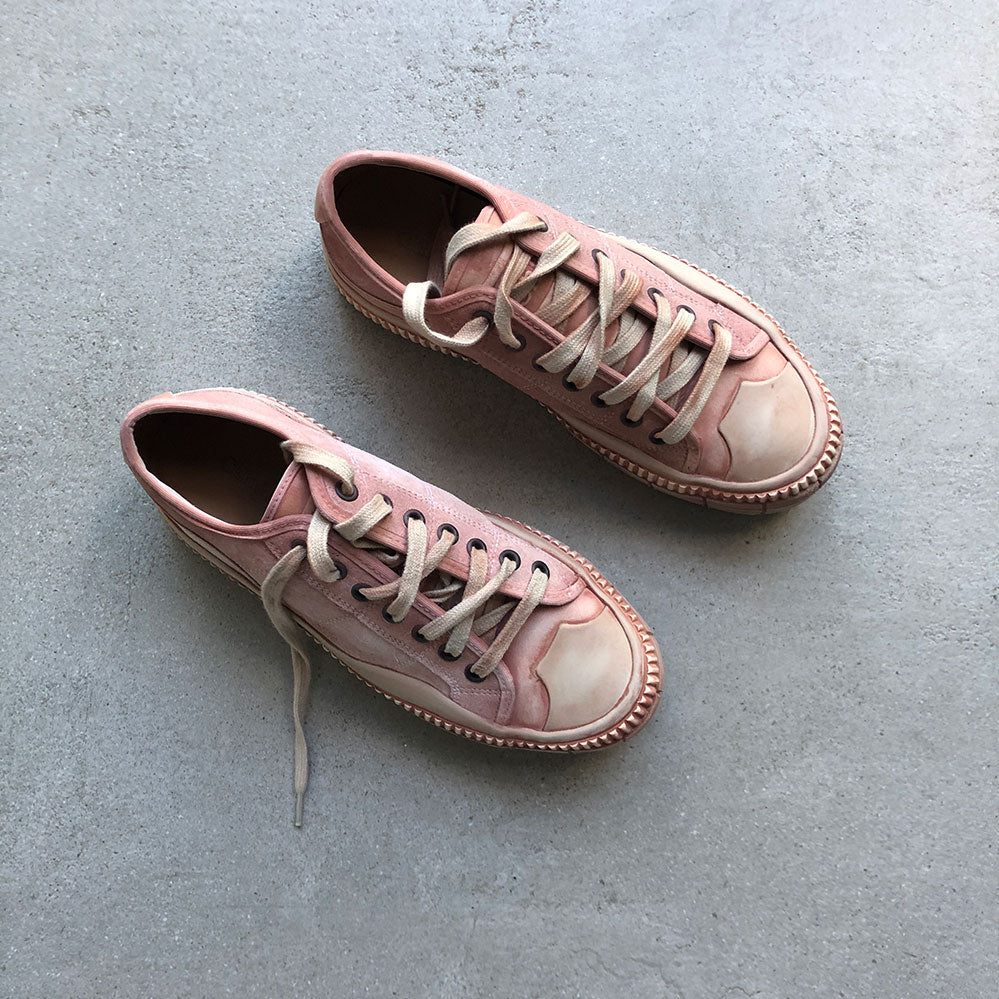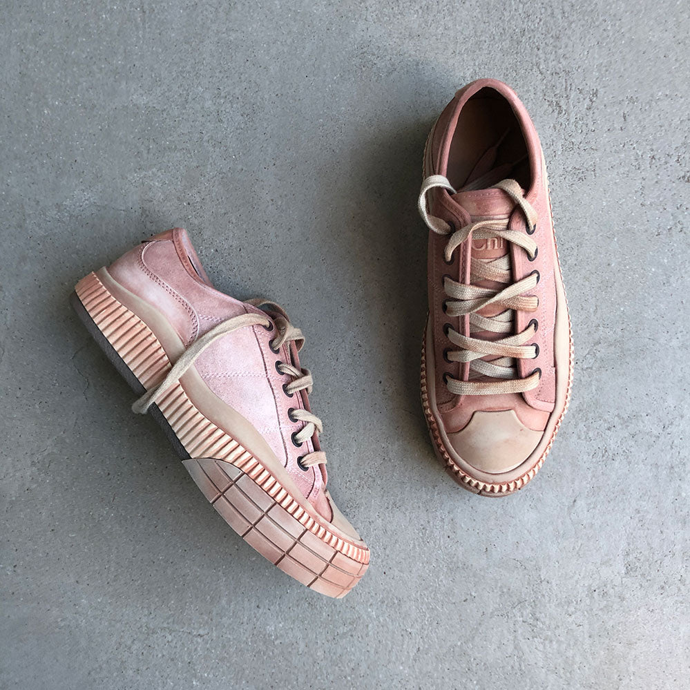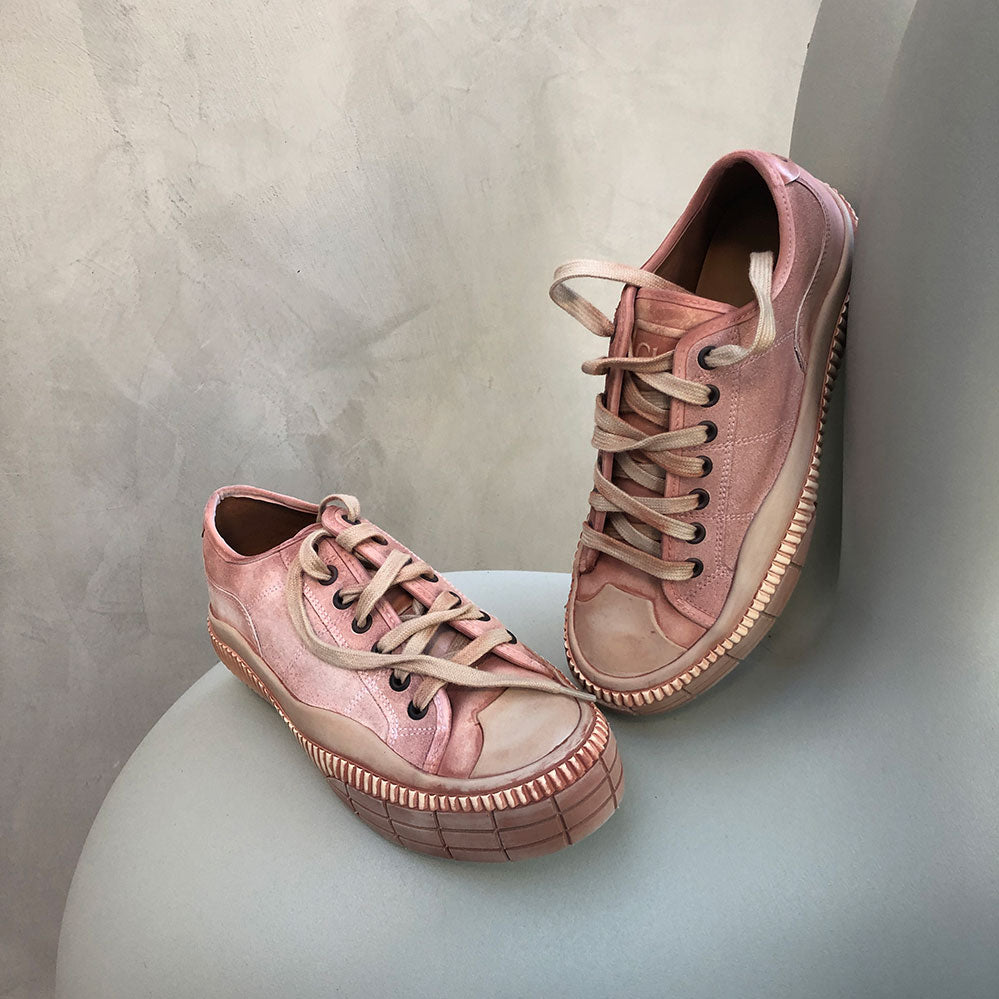 Clint low-top sneaker in tumbled smooth & suede cowhide. The hand-made tumbled effect may differ from one pair to another.