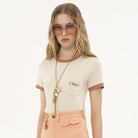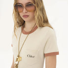 Crew-neck T-shirt in cotton jersey with a chest pocket, featuring a Chloé logo rubber print and contrast trims at the neckline and sleeves.