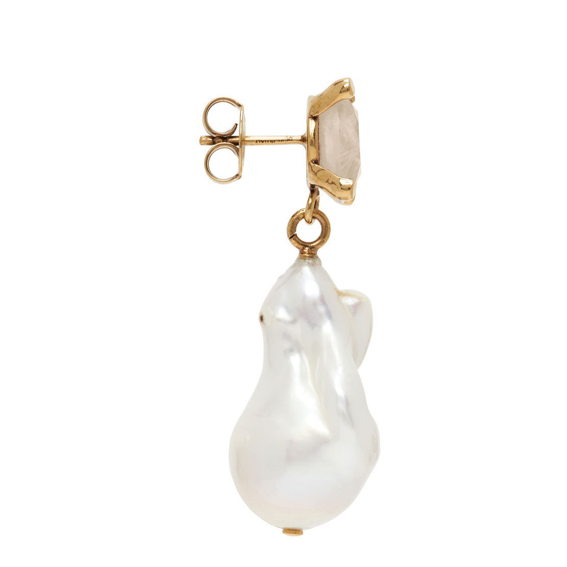 Pearl earrings in brass & freshwater baroque pearl with quartz detail.