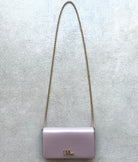 Crafted from shiny calfskin, the Chloé Iconic flap wallet on chain combines a minimalist silhouette with a metallic signature from the Maison's archives.