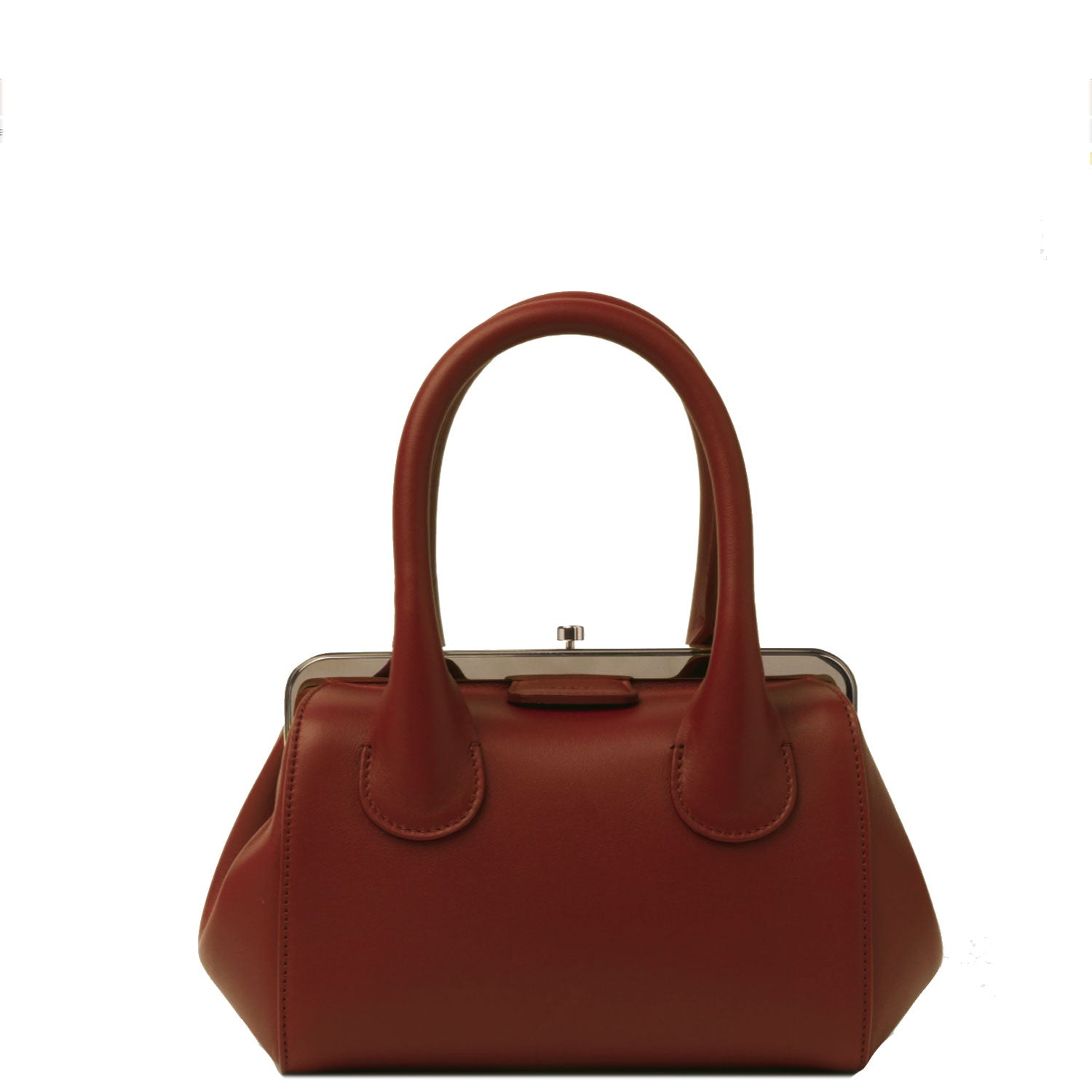 This handbag is made from semi-aniline leather. The half-transparent finish imparts a robust nature to the product while preserving its natural character.