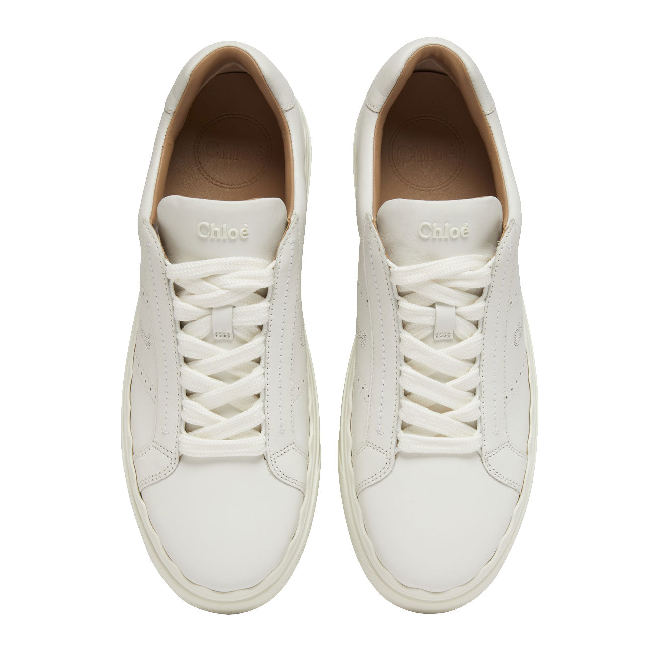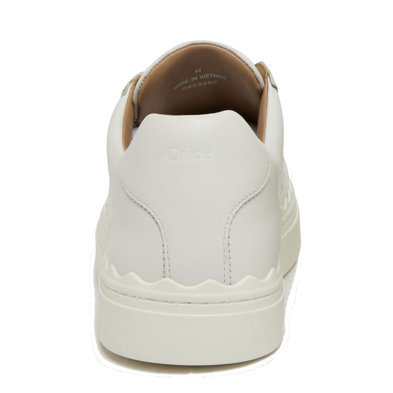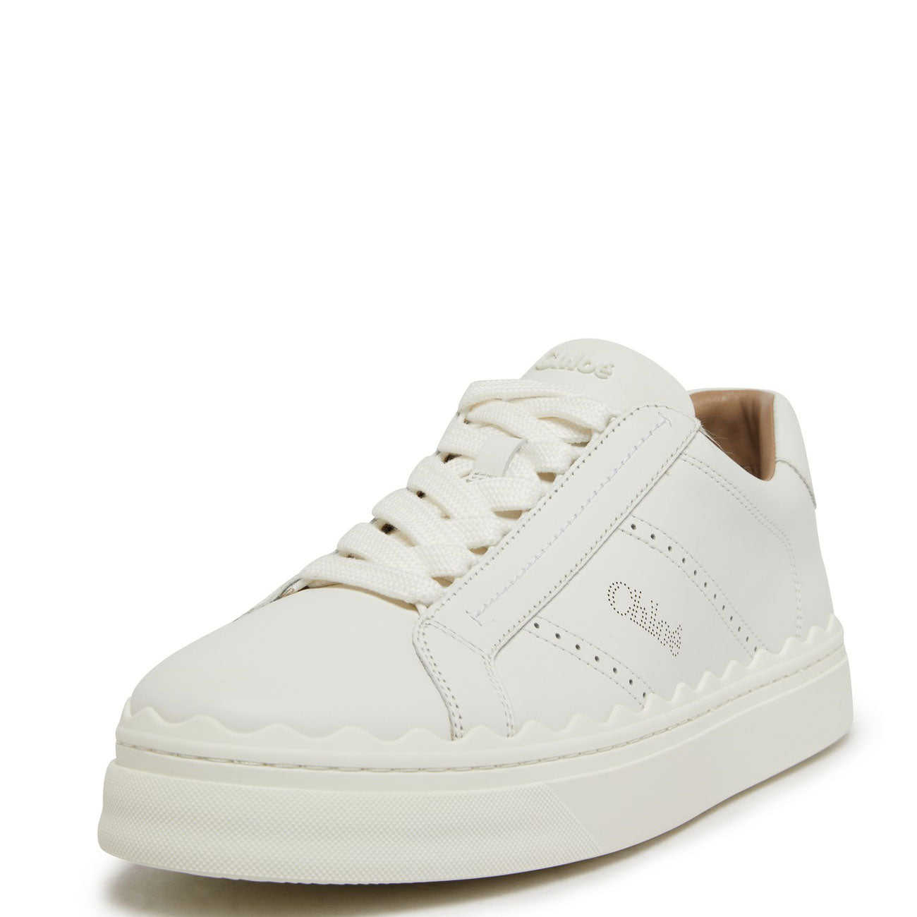 A sporty update on the classic Laurent sneaker from Chloe with a logo embossed tongue finished with a logo heel collar and scalloped detailing on the rubber sole. This season will perforated leather and mixed leather finishes on tonal white.