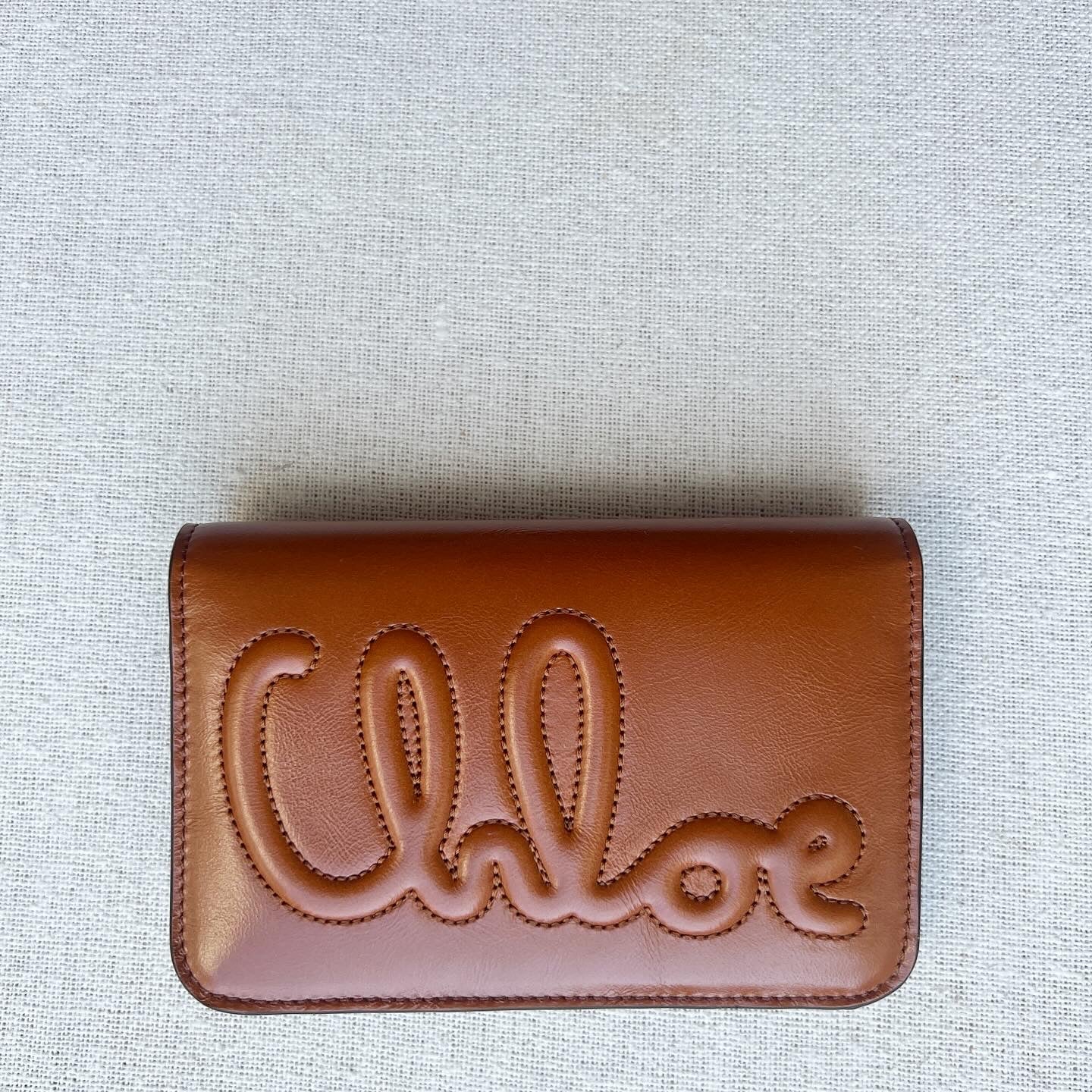 Chloe Logo Compact Flap Wallet, Clay