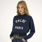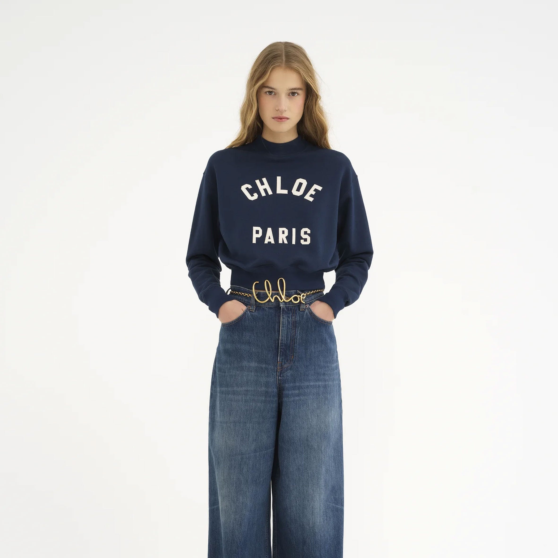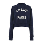 Mock-neck sweater in cotton fleece with a cropped, boxy shape featuring varsity Chloé logo appliqué patches.