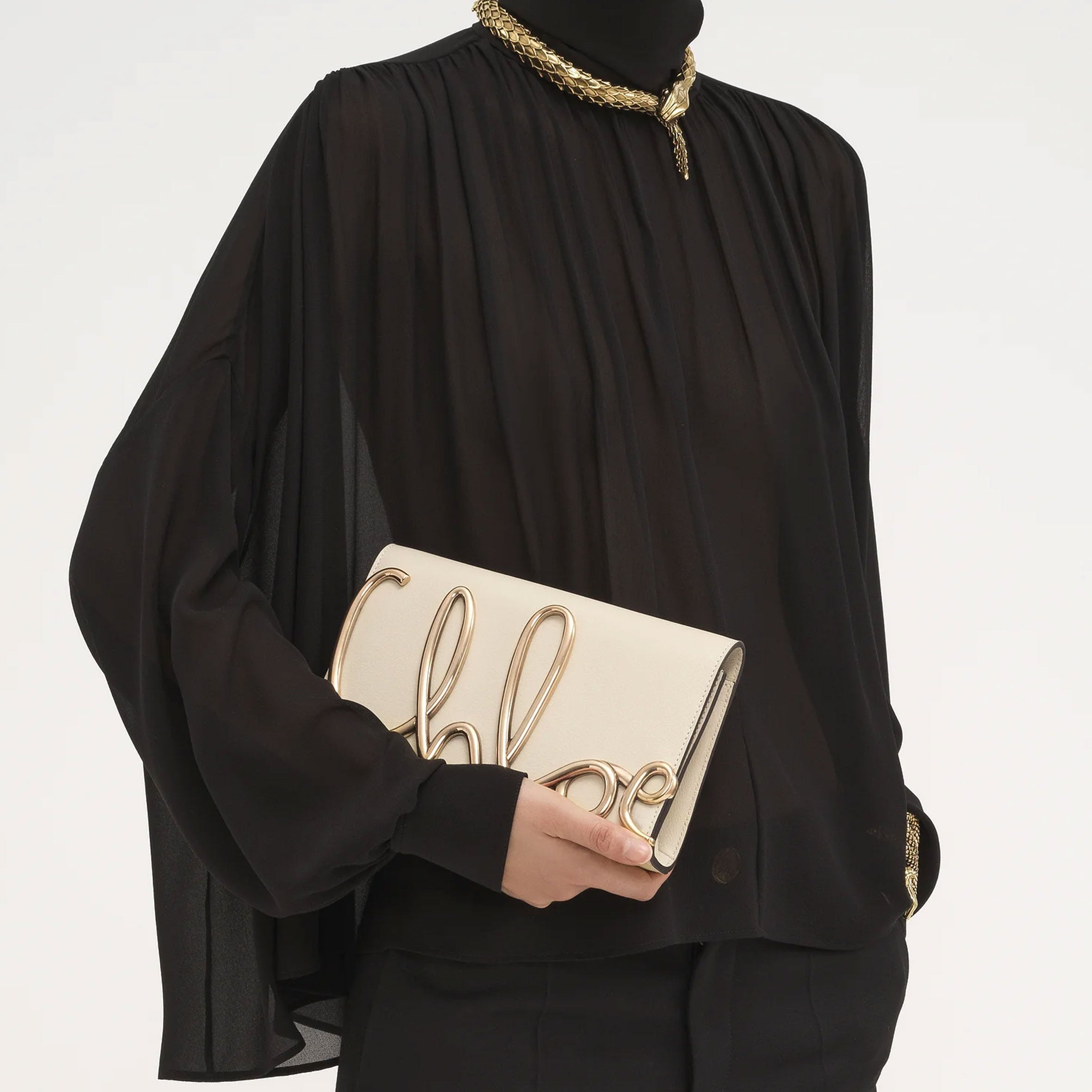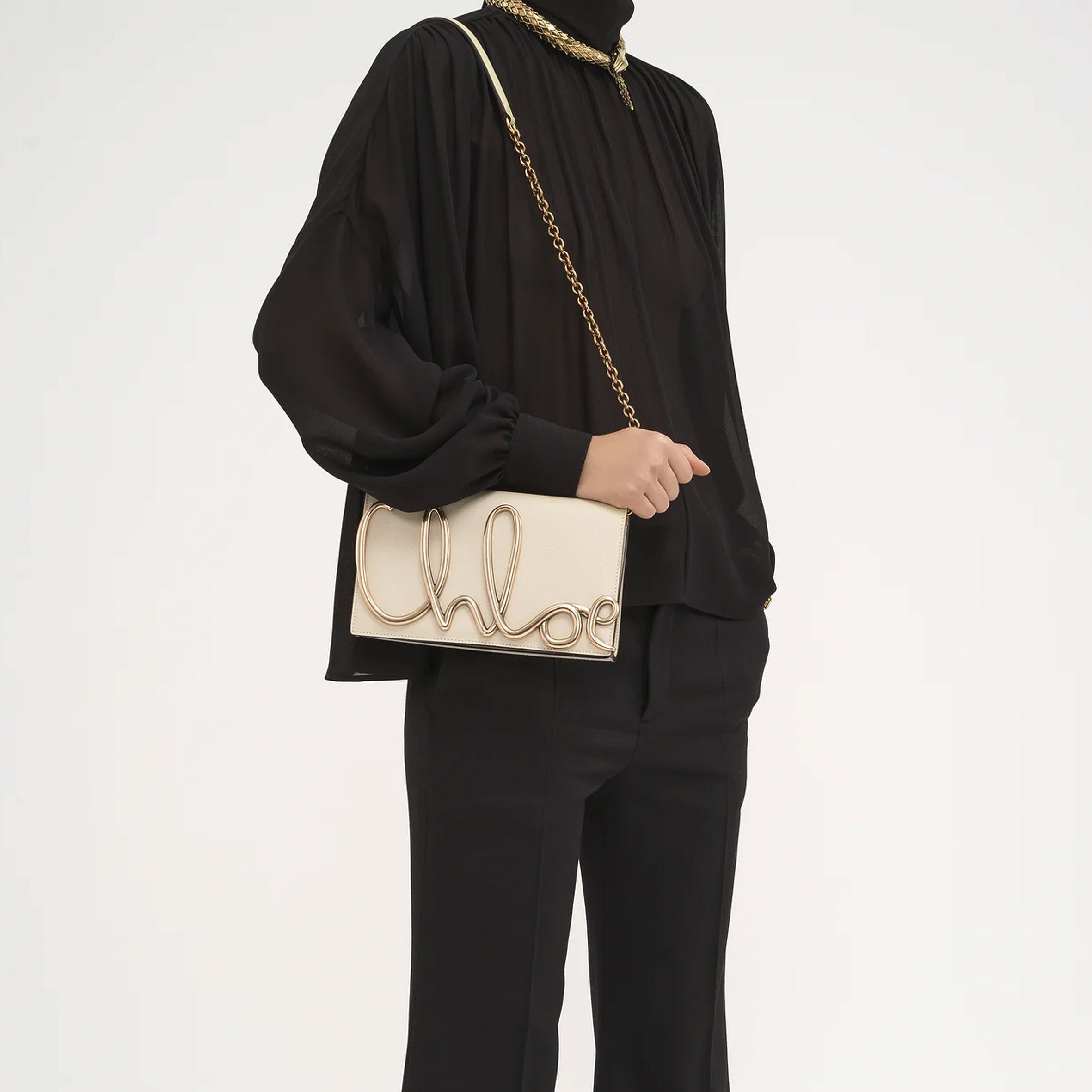 Crafted from smooth calfskin, the Chloé Iconic crossbody bag is inspired by a belt from the Maison's Archives, featuring an oversized golden jewel-like signature.