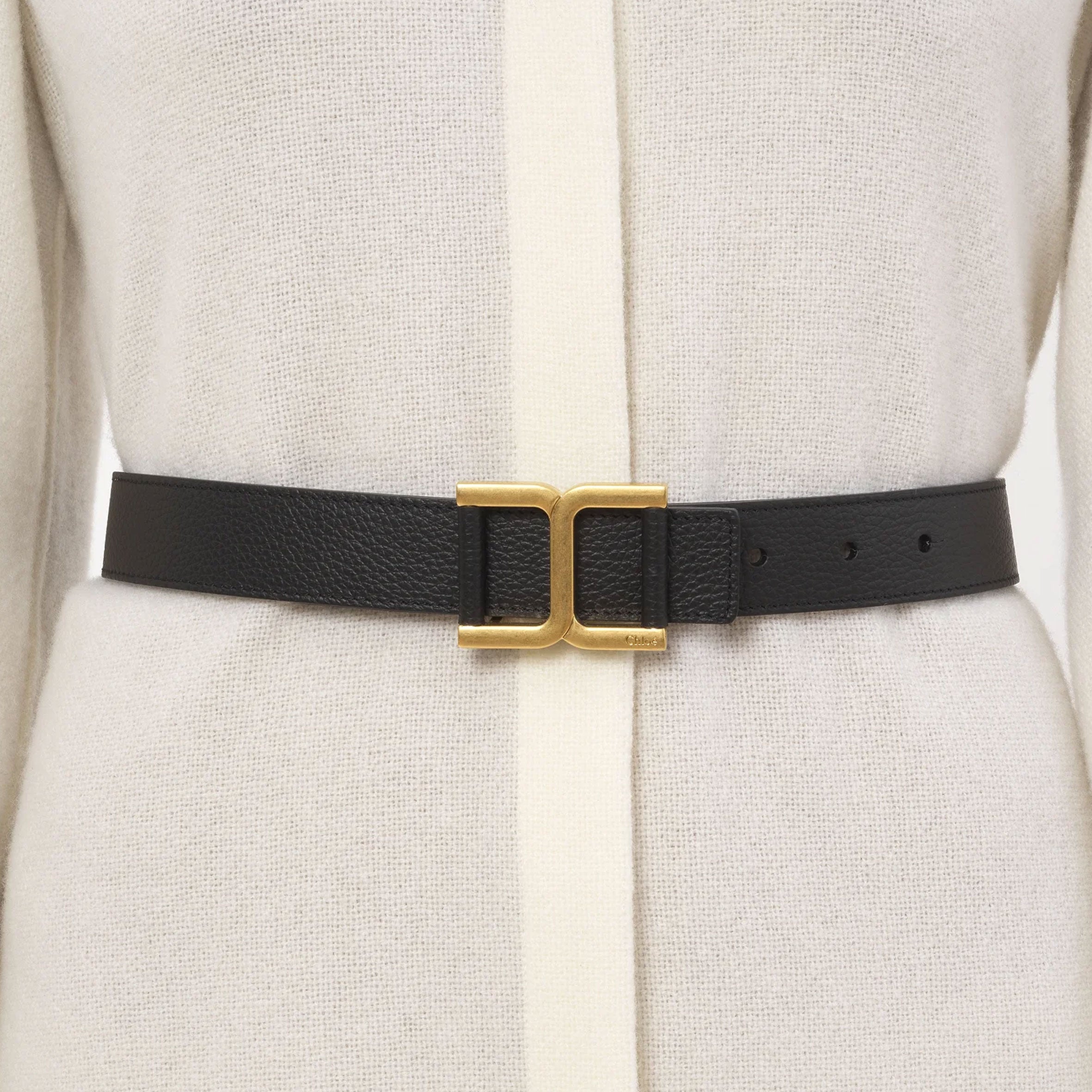 Crafted from grained calfskin in a thin, feminine style, this Marcie belt features the line's iconic signature in the metallic buckle. The design is inspired by vintage Chloé Marcie belts to build on the Maison's heritage. Fastened by a collar stud, the thin belt has clean lines for an everyday piece that elevates all jeans and pants. Multiple holes allow you to adjust the fit.