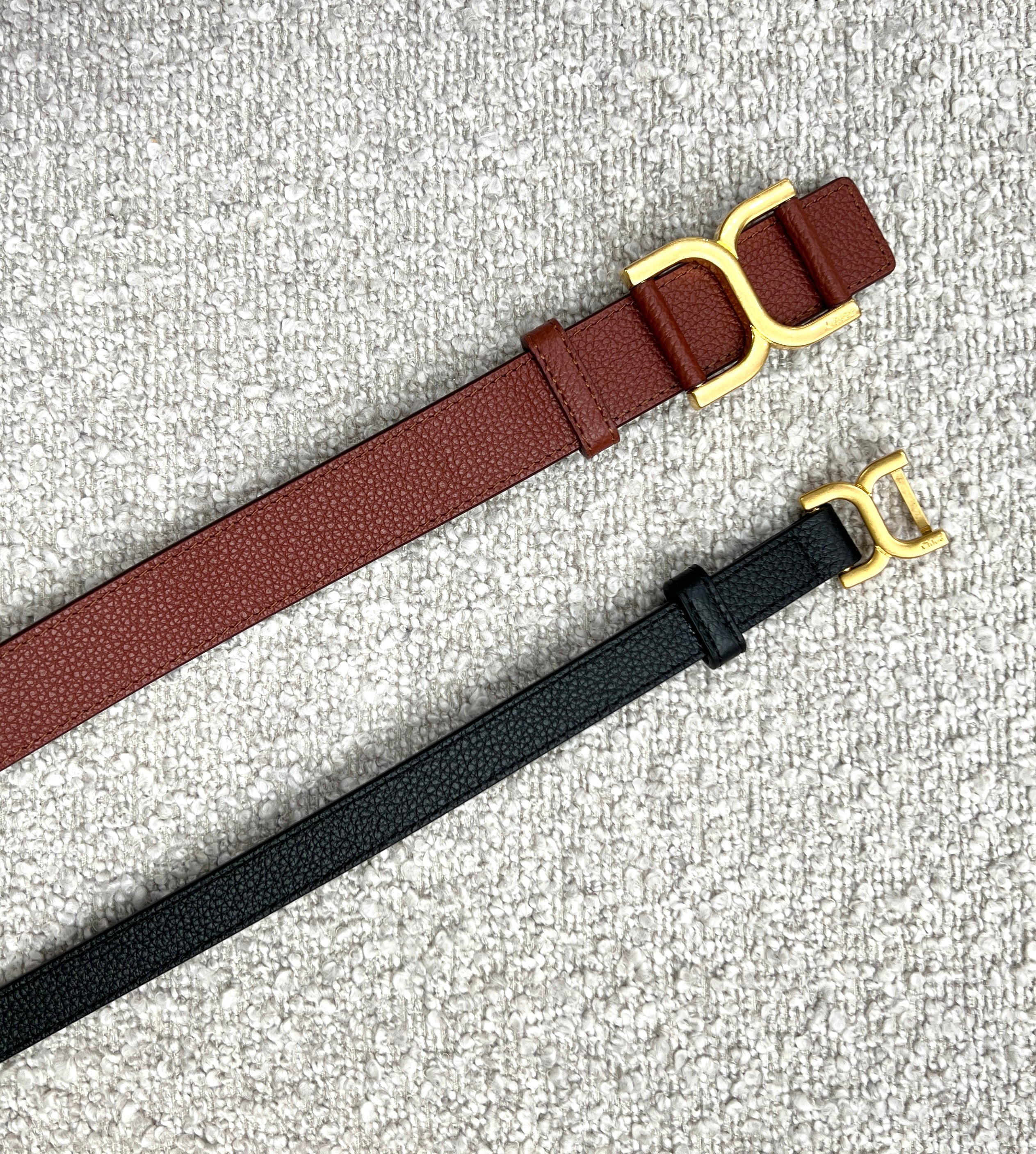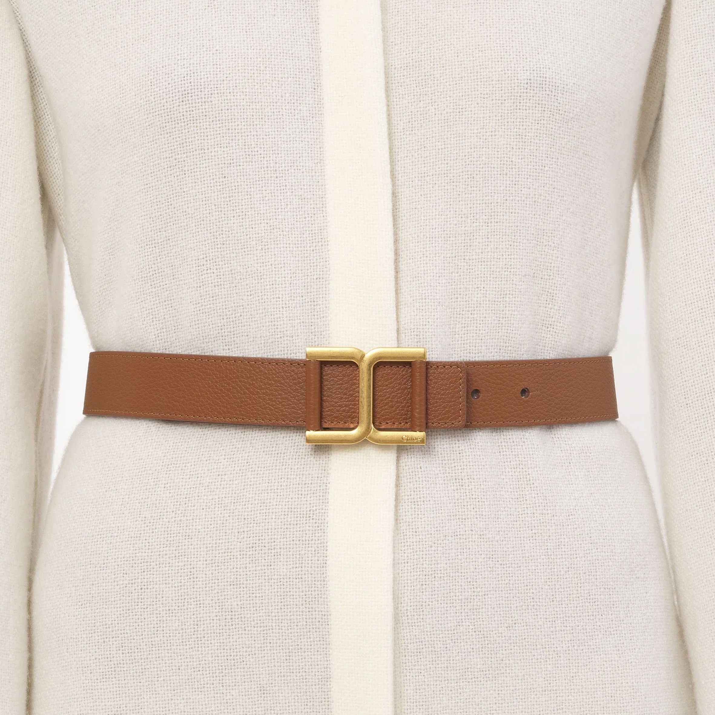 Crafted from grained calfskin in a thin, feminine style, this Marcie belt features the line's iconic signature in the metallic buckle. The design is inspired by vintage Chloé Marcie belts to build on the Maison's heritage. Fastened by a collar stud, the thin belt has clean lines for an everyday piece that elevates all jeans and pants. Multiple holes allow you to adjust the fit.