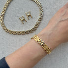 Crafted from bright gold brass, these Marcie earrings showcase the line's iconic signature through their sleek, curved design. Mix and match the earrings with the Marcie chain necklace, ring or bracelet for a statement look.