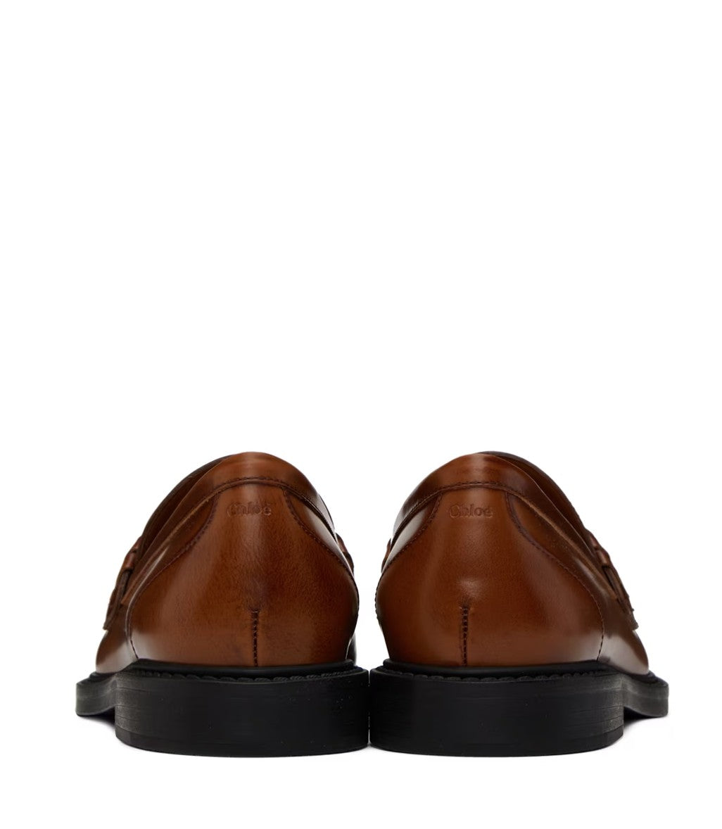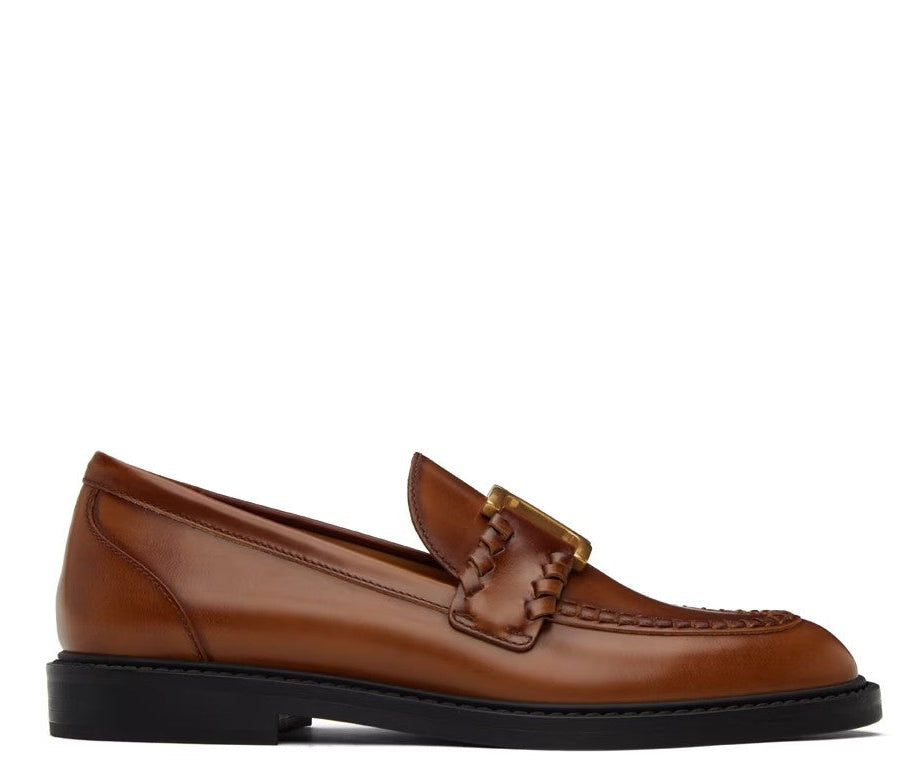 Reinterpreting the iconic leather goods line, this classic Marcie loafer is crafted from brushed calfskin elevated with the distinctive braided details and Chloé-engraved gold-toned hardware found in the Maison's Marcie bags.