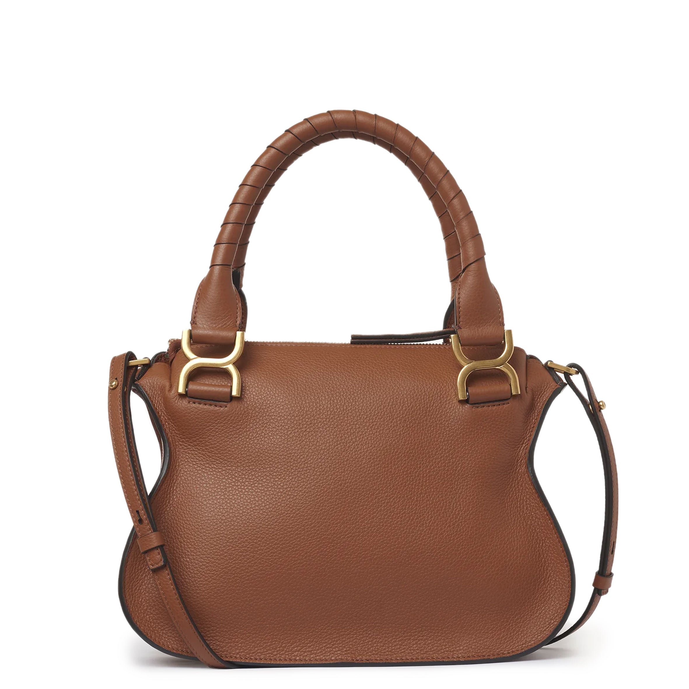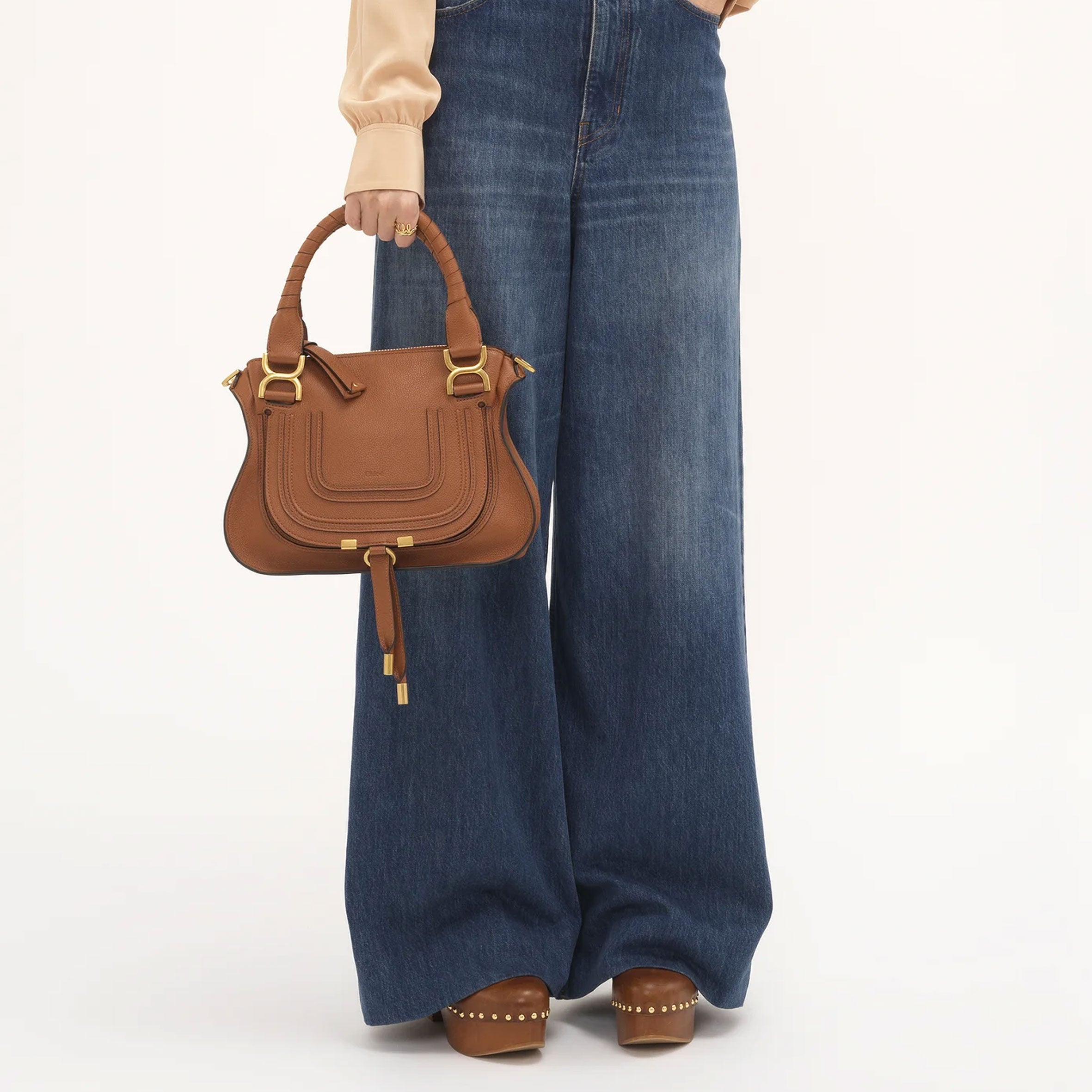 Small Marcie double carry bag in grain calfskin with antique brass hardware.