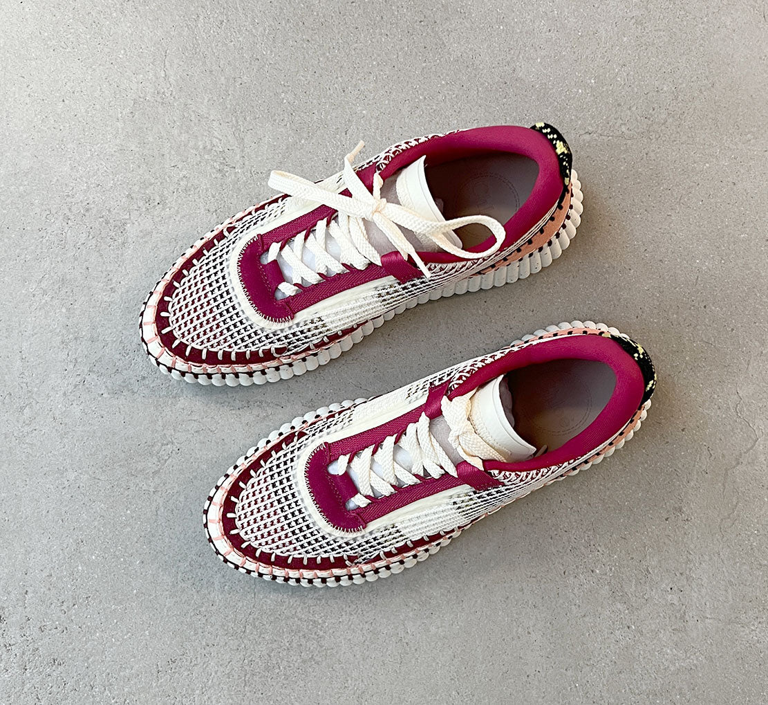 The bold, lightweight structure features a hand-stitched mesh upper, showcasing authentic Chloé craftsmanship. Set on a contrasting, ridged sole, this women's sneaker is ultra-comfortable with a cool, sporty aesthetic. The Chloé logo at the back adds a signature touch.