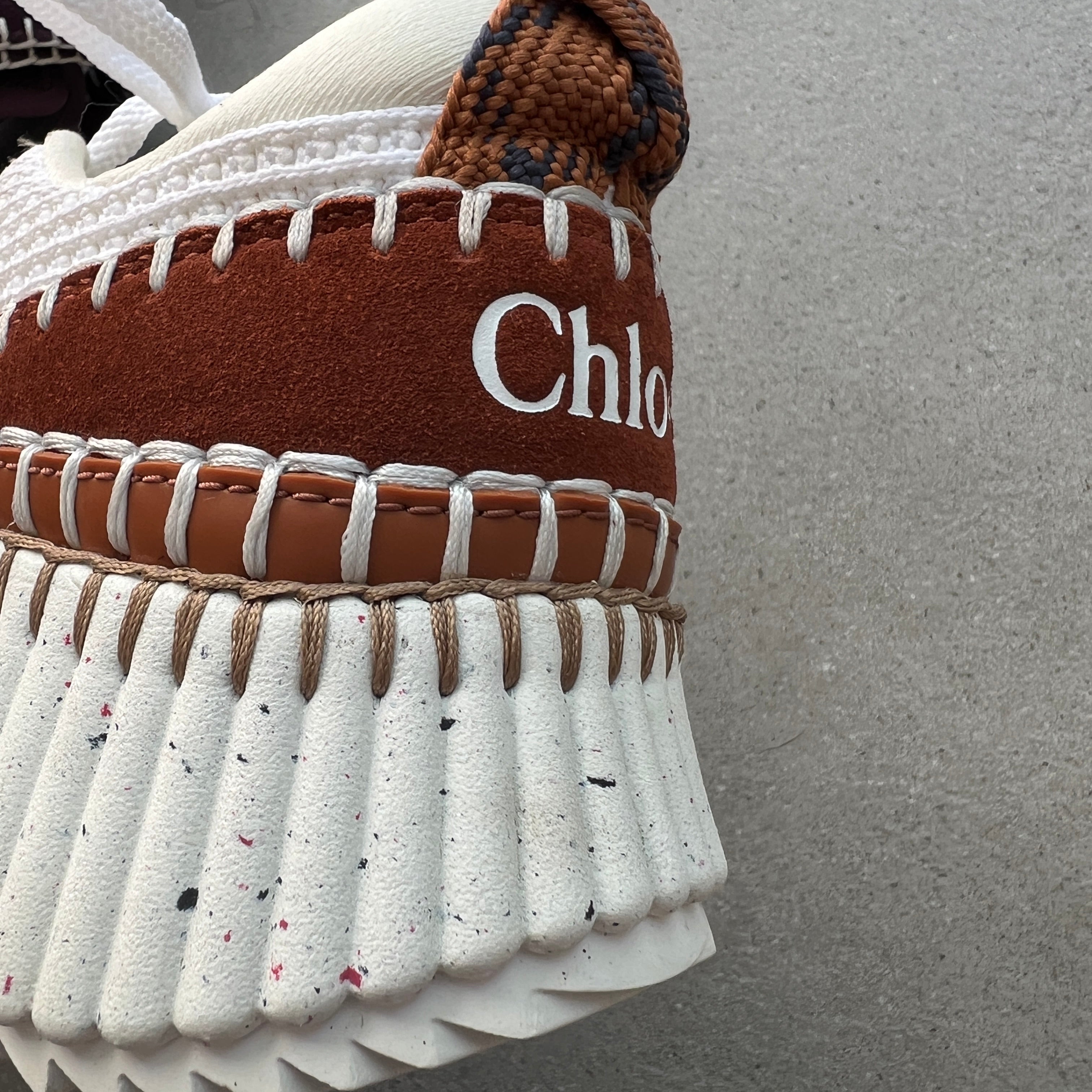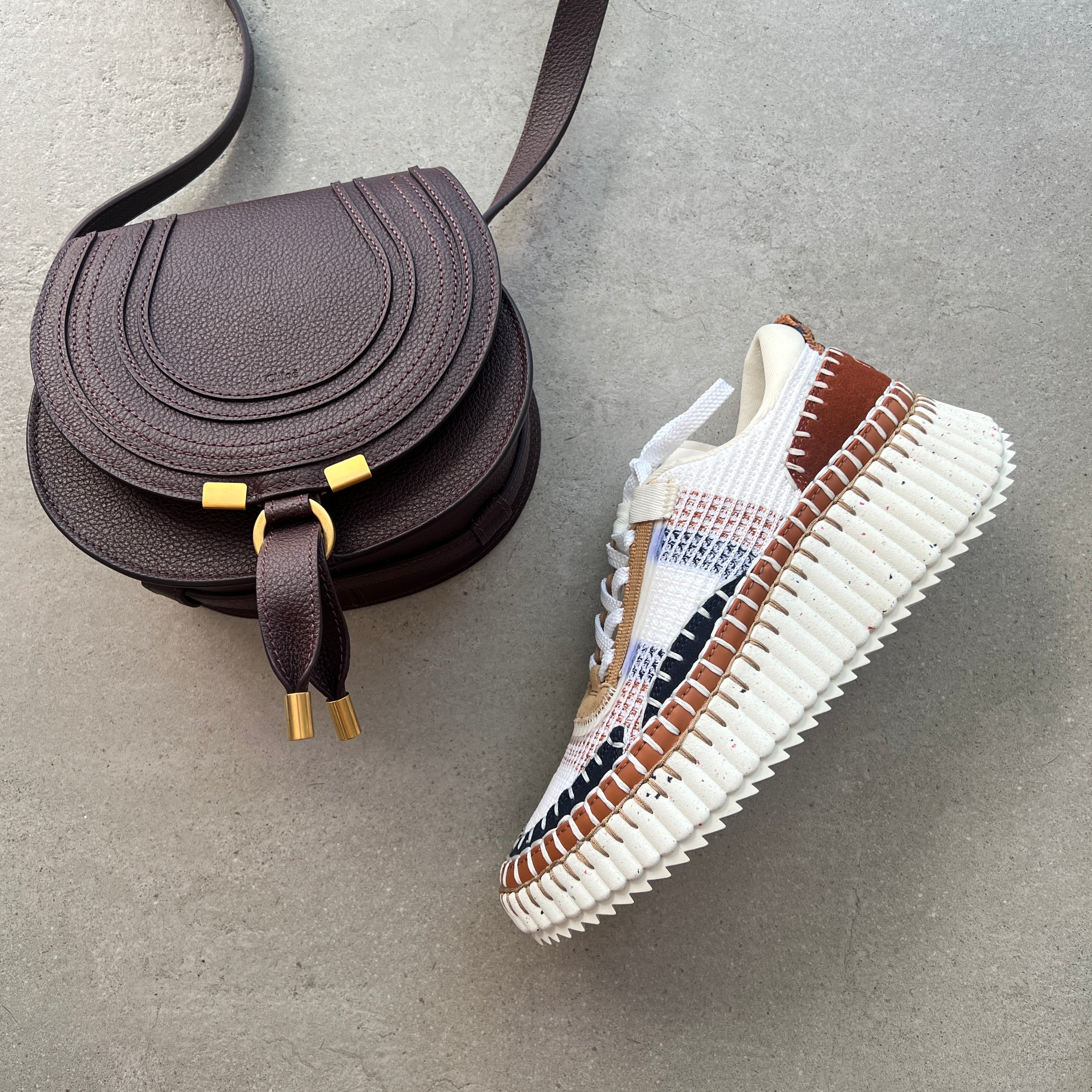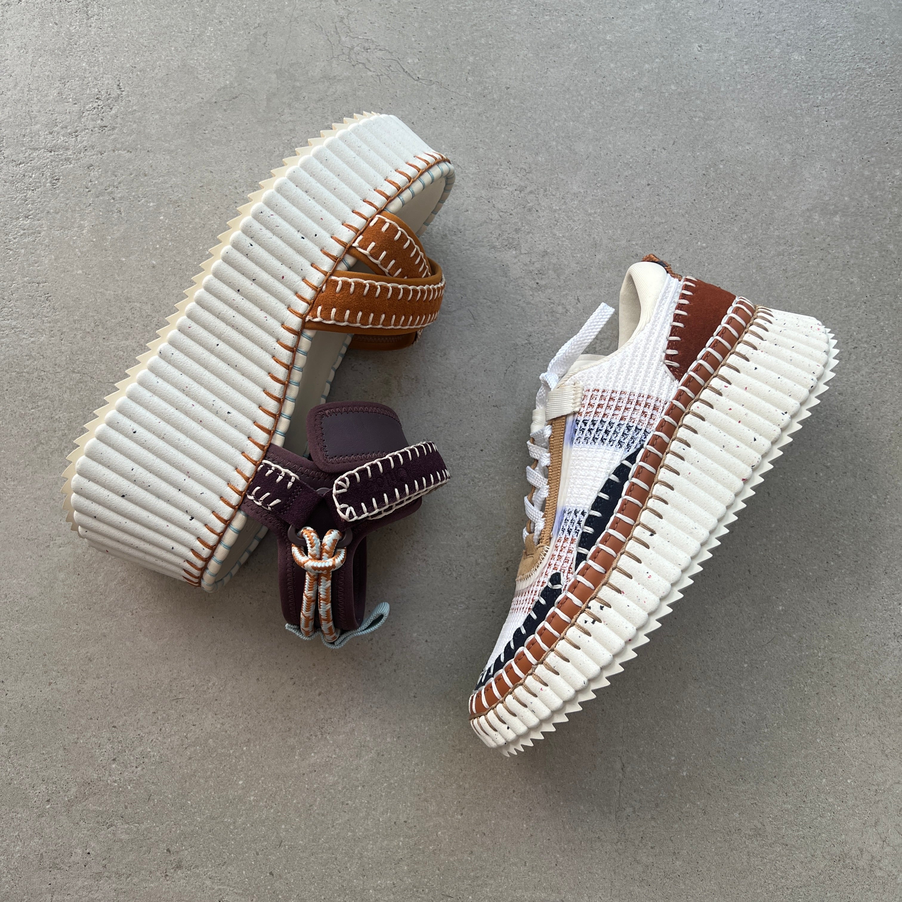 The bold, lightweight structure features a hand-stitched mesh upper, showcasing authentic Chloé craftsmanship. Set on a contrasting, ridged sole, this women's sneaker is ultra-comfortable with a cool, sporty aesthetic. The Chloé logo at the back adds a signature touch.