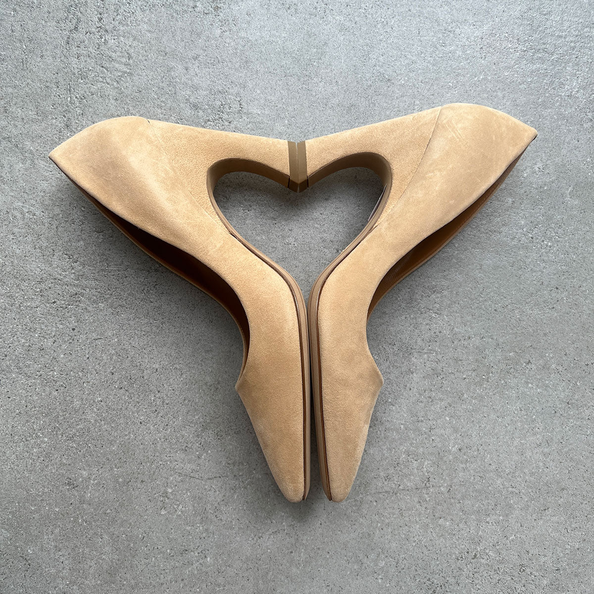 Easy to wear, this day-to-evening pump has a distinctive heel that forms a heart shape when placed alongside the other heel. This playful detail updates the timeless silhouette with a romantic touch.