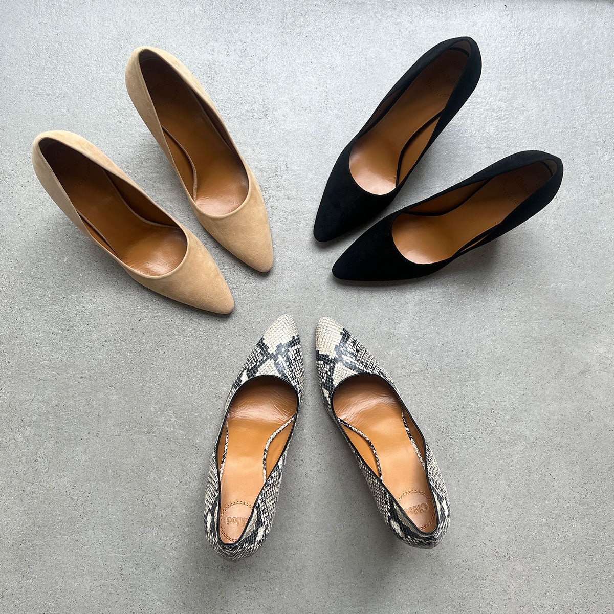 Crafted from luxurious python-effect goatskin for a bold attitude, the Oli pump exudes pure femininity with its elongated almond toe shape and refined sole.