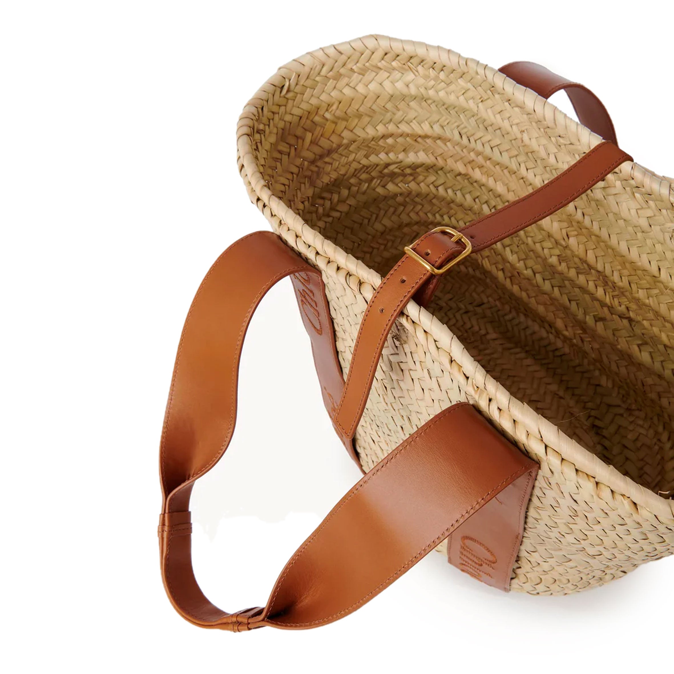 Encapsulating a carefree summer attitude, this Chloé Sense small basket is a compact accessory crafted from handbraided raffia. Smooth calfskin strips and comfortable handles add luxurious contrast, while the Chloé logo embroidery lends a signature finish. A leather link closure secures the open top.