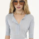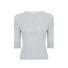 Short-sleeve Henley shirt in a linen-silk mix fine flame knit, detailed with mother-of-pearl buttons.