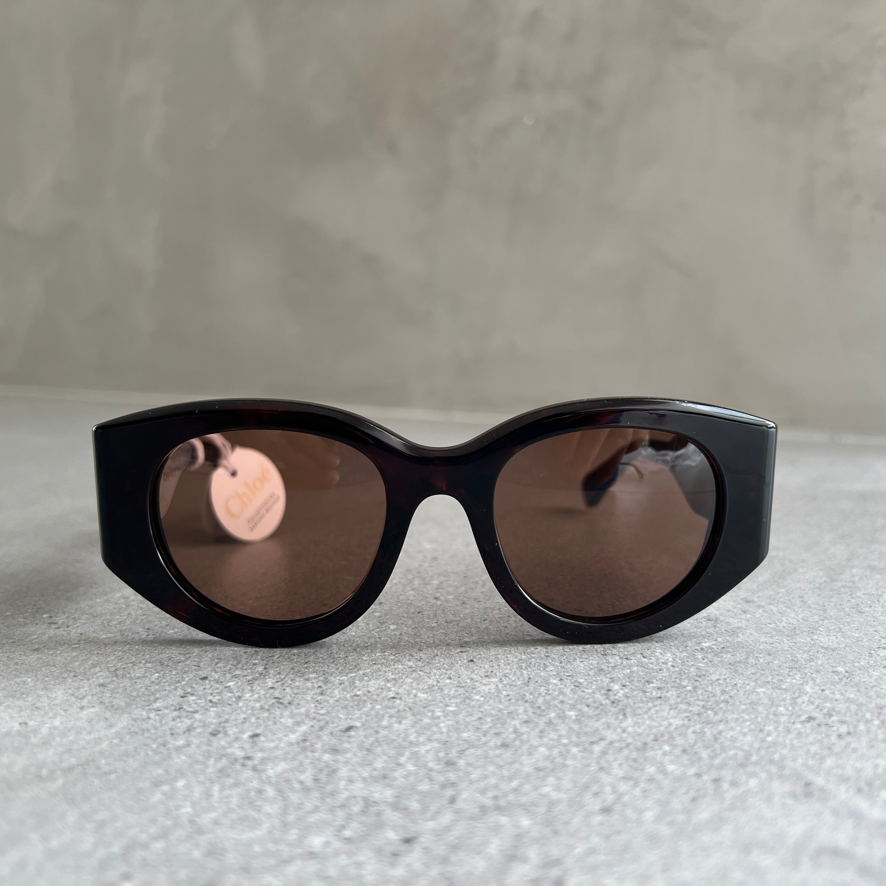 Rounded Oval sunglasses with Chloe logo engraved on both arms.