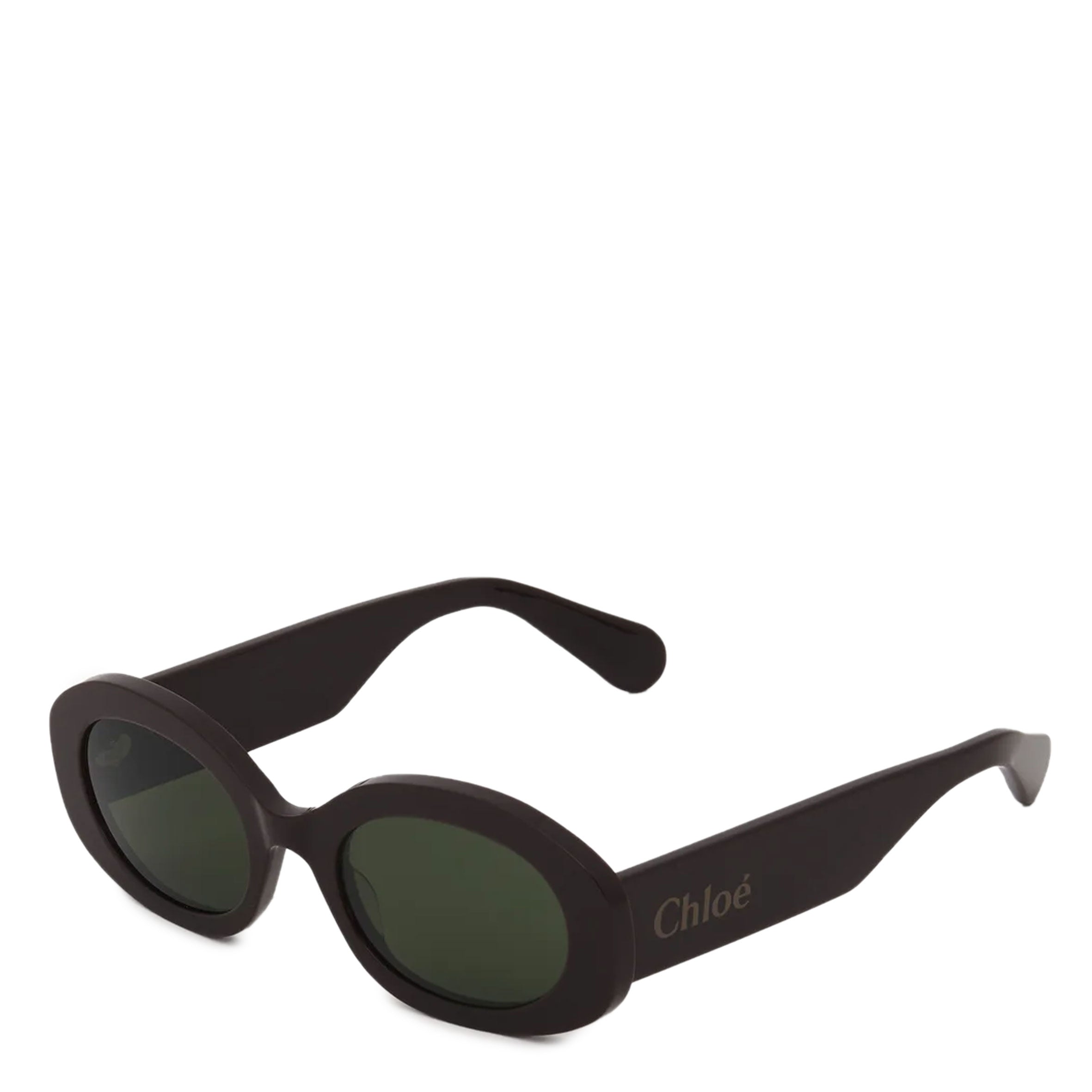 These Naomy sunglasses make a bold, modern statement. Oval shape the shiny burgundy frame is crafted from lower-impact acetate, featuring extra-large temples stamped with a big contrasting Chloé logo on the left.