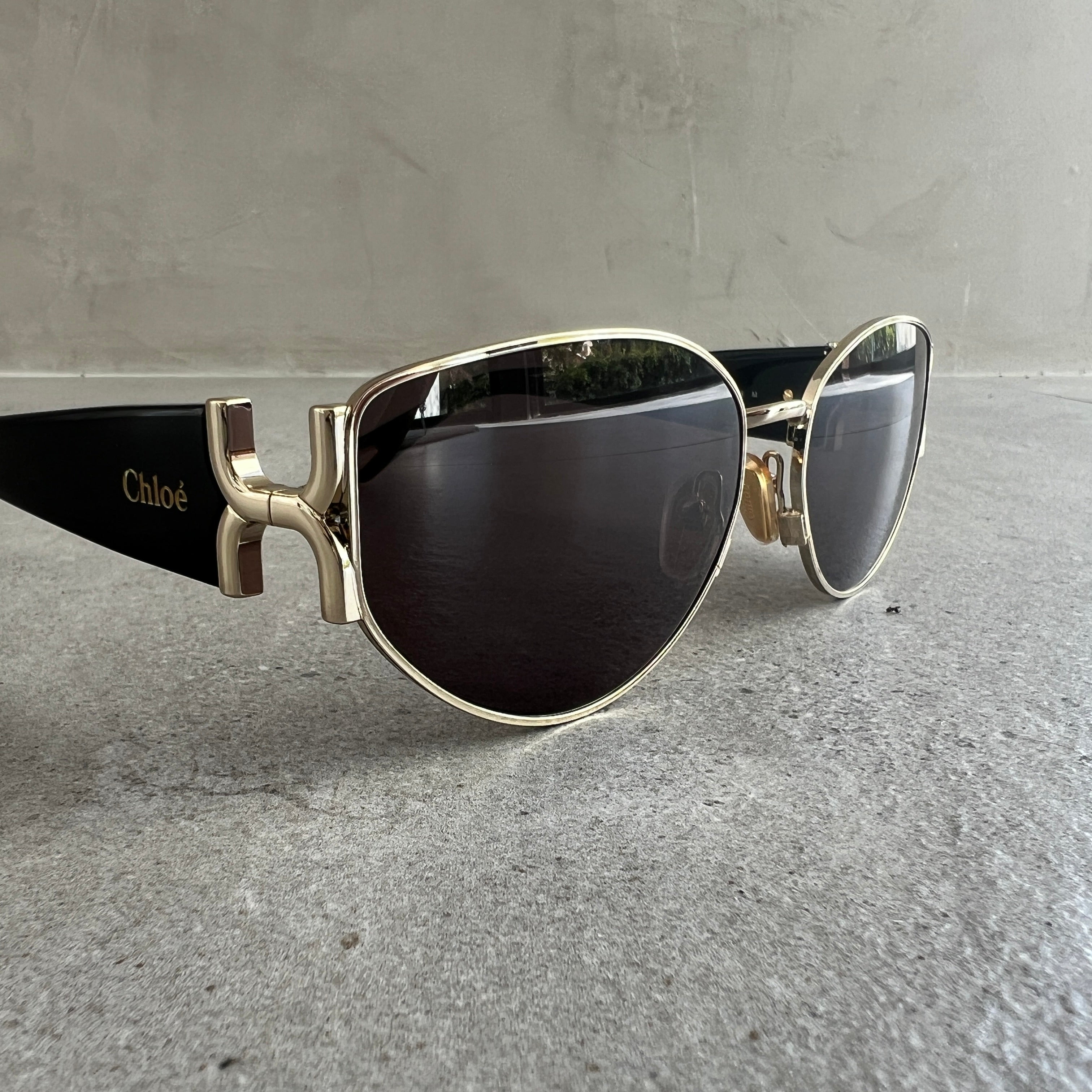 Exuding contemporary sophistication, these Marcie oval cat sunglasses are a new update to the iconic Chloé line. The sleek metal frame a bold statement, elevated with Marcie's signature gold metal piece at the hinges.
