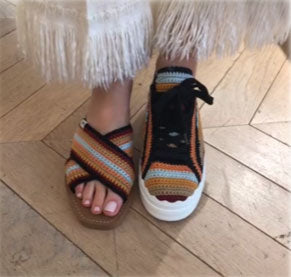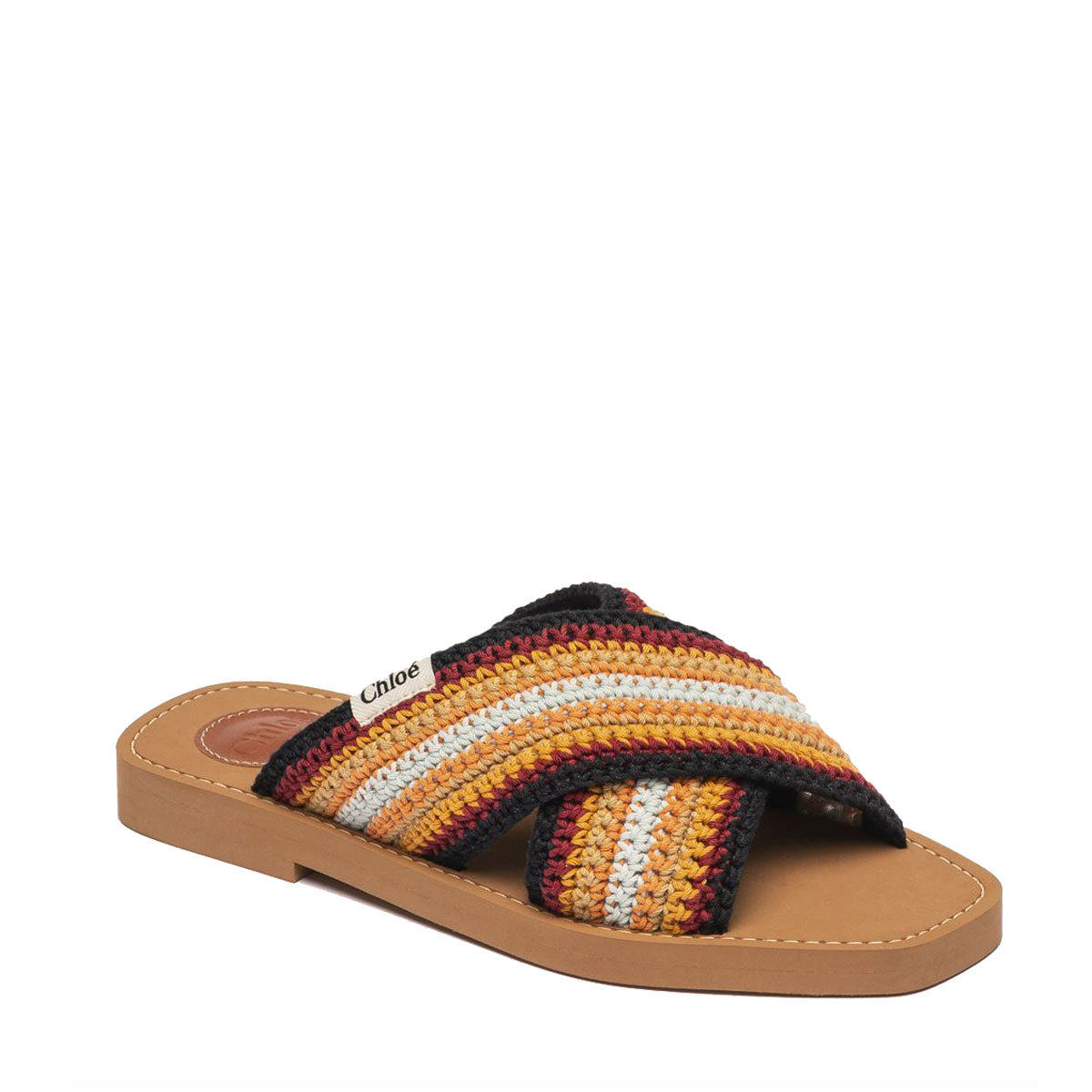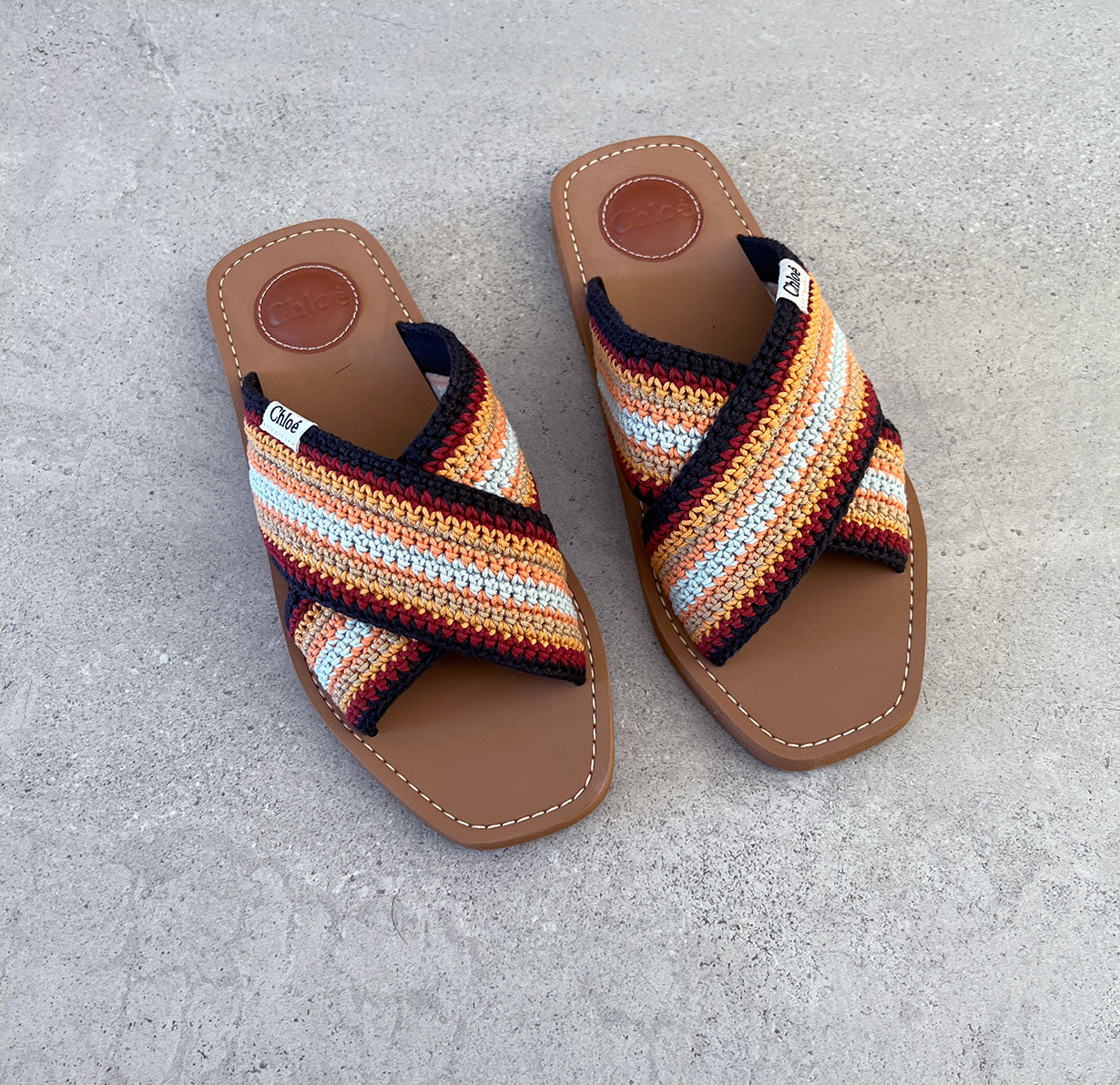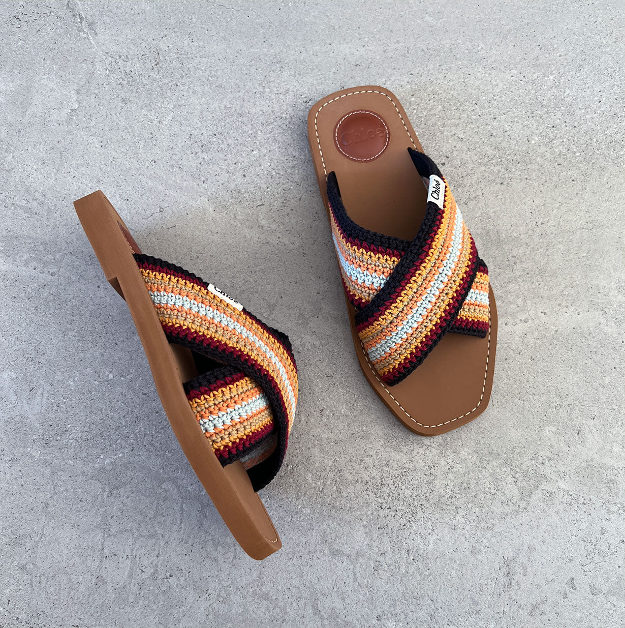 A seasonal interpretation of the bestselling Woody slide, the Woody flat mule is handmade from recycled crochet for an authentic yet playful look.