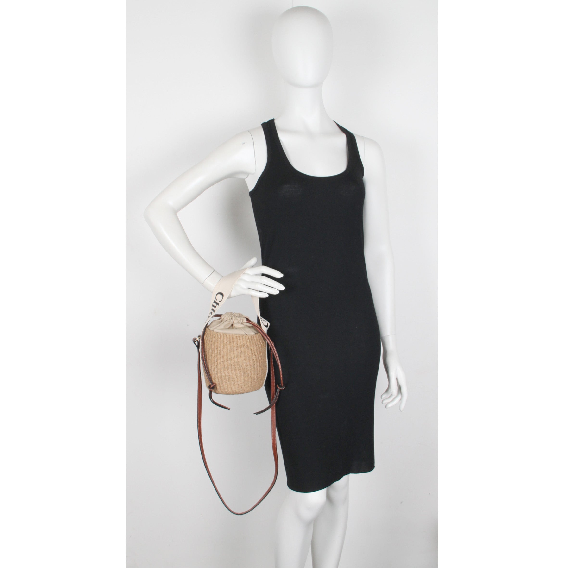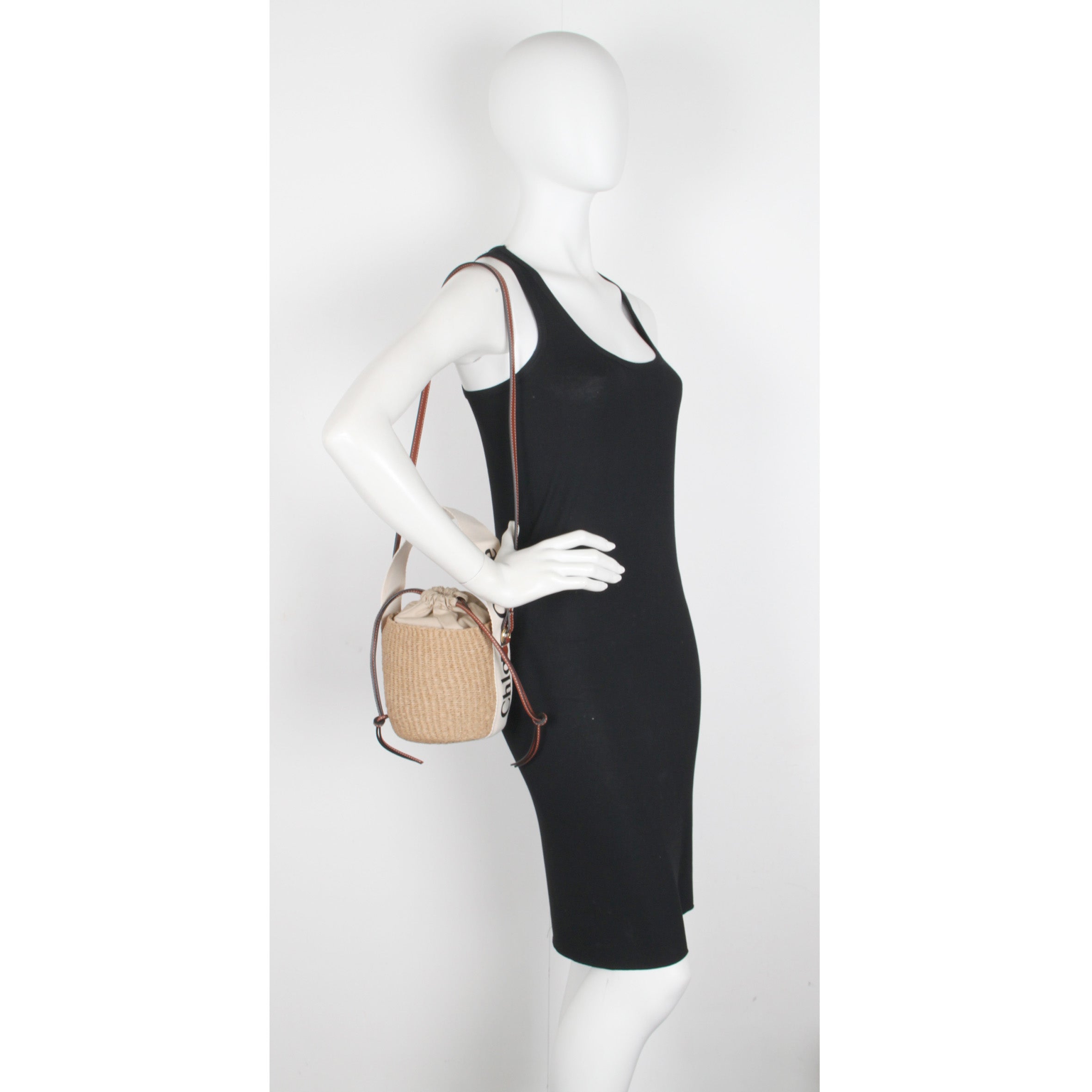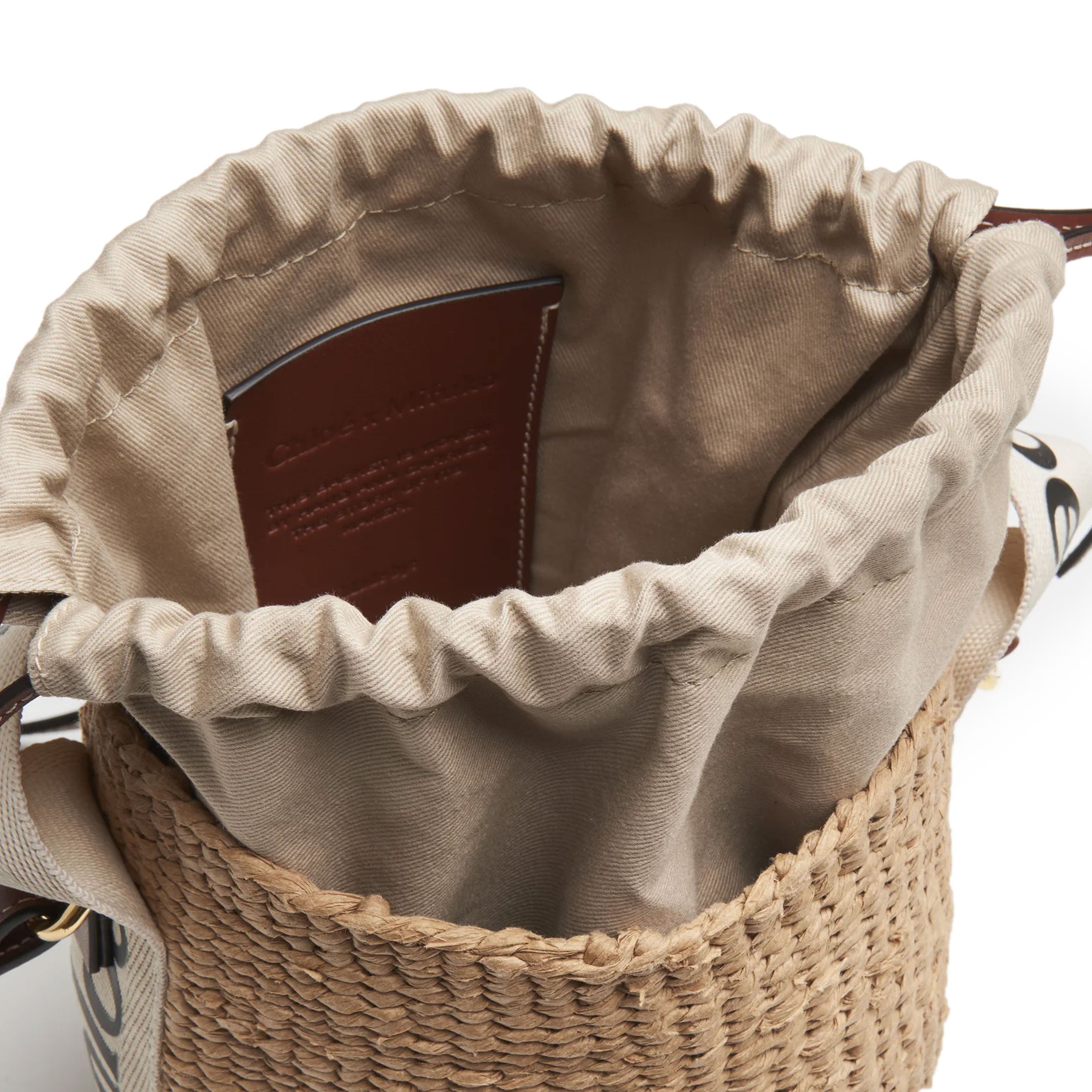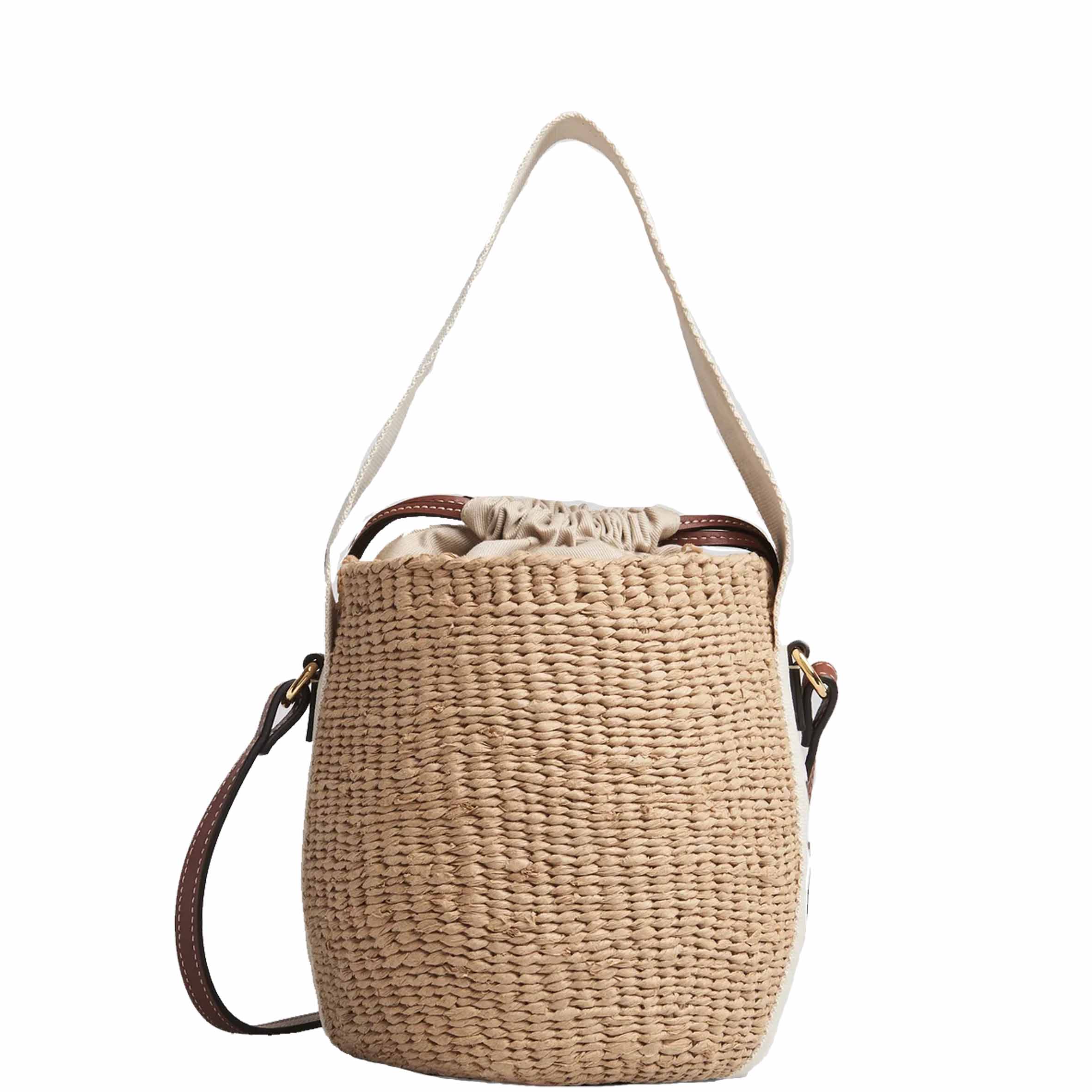 Crafted in a compact, round basket shape for an easy summer attitude, this small Woody basket is handwoven from partly upcycled materials by independent craftswomen in Kenya. The basket has a drawstring fastening and a long leather strap for shoulder and cross-body wear. Echoing the Maison's Woody mule, the line's signature Chloé logo ribbon details the natural fiber and creates a wide handle.
