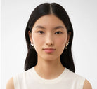 Set in gold brass, these sculptural earrings interpret the Gemini constellation in natural pearl and agate. Mix and match them with the Zodiac collection rings to create your own unique constellation.