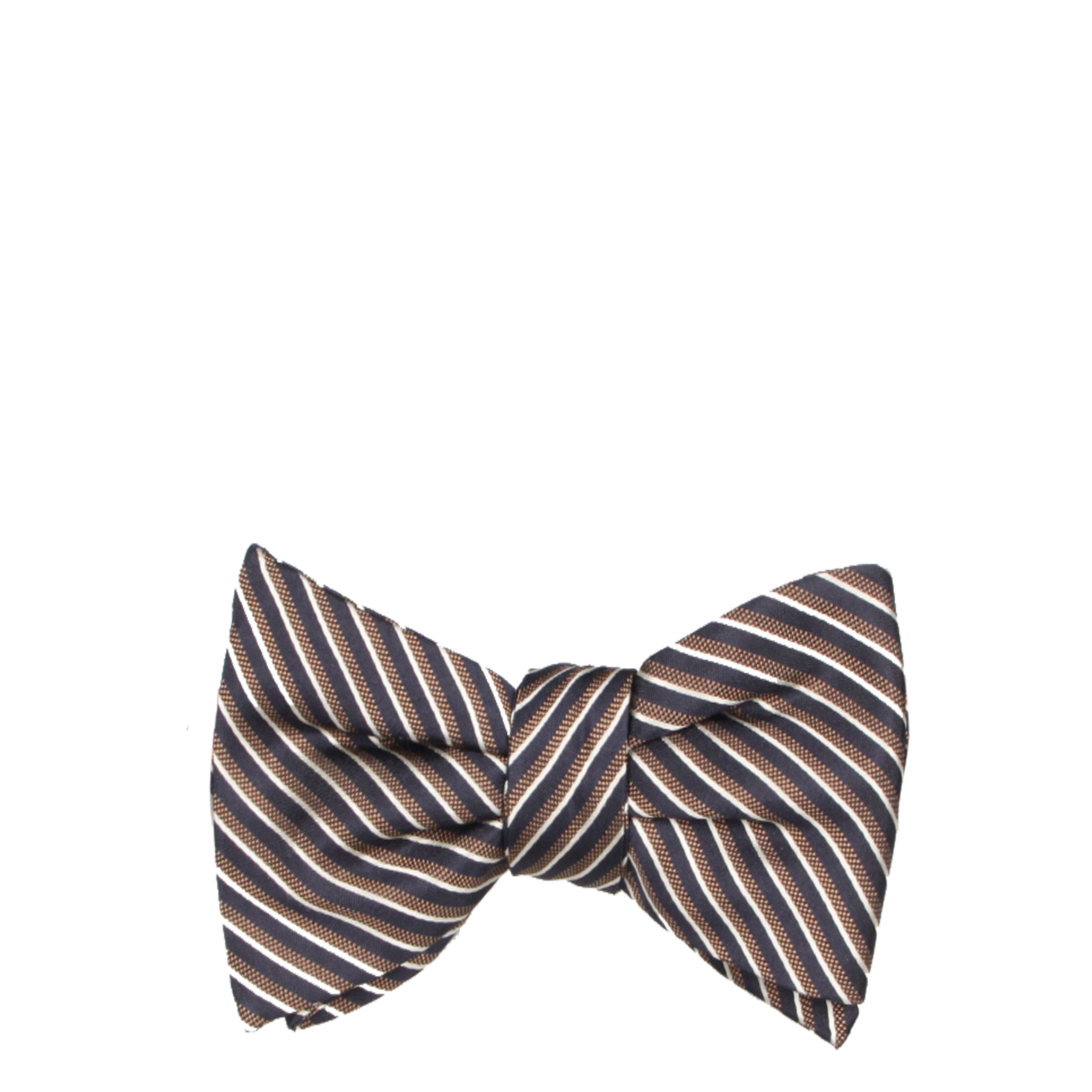 This grosgrain bowtie from Alexander McQueen features an all-over diagonal striped design in black, cream and dark taupe.