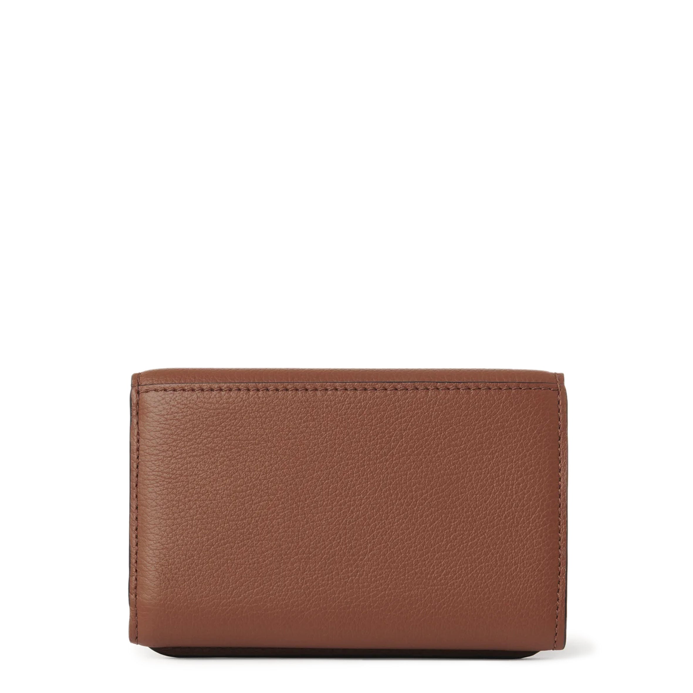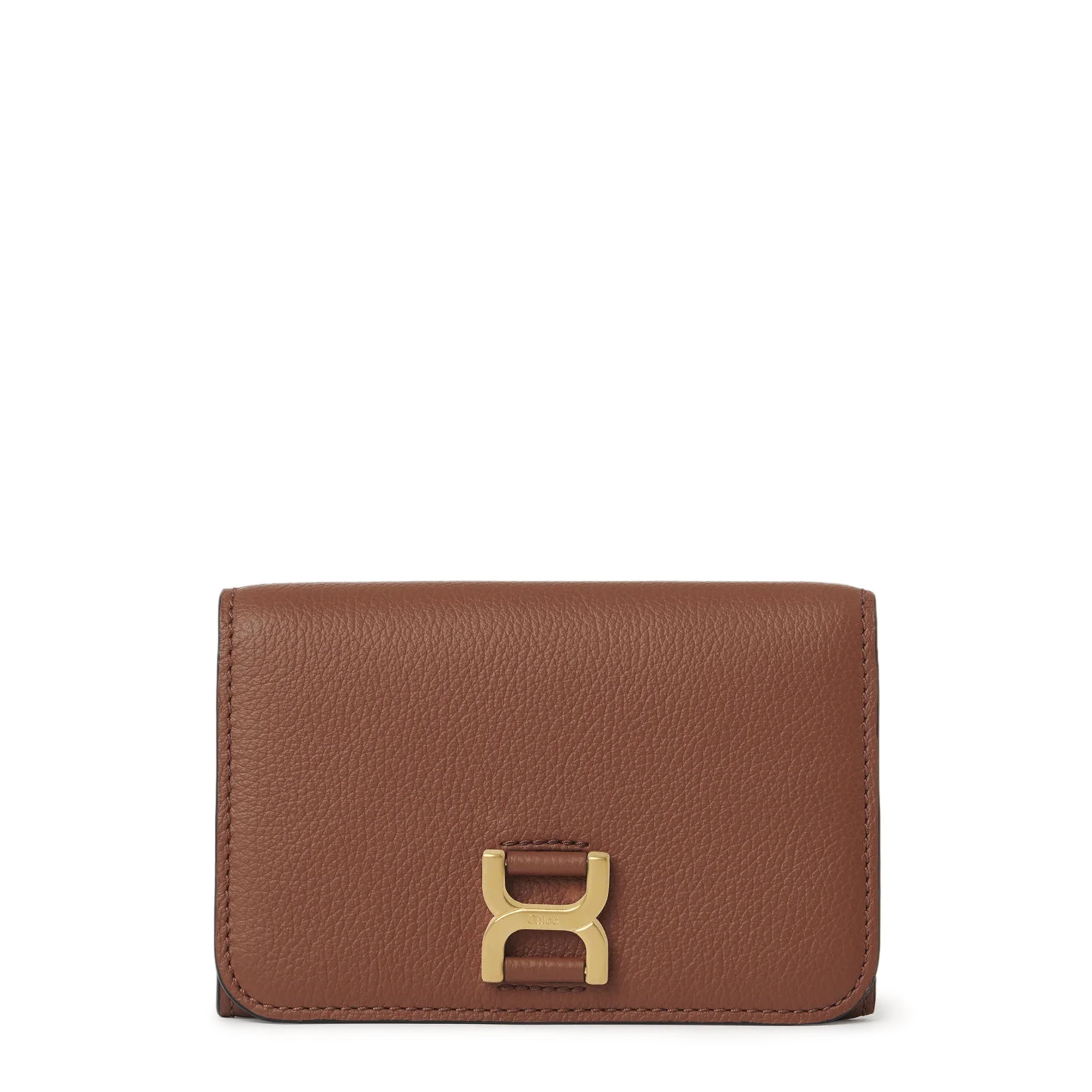 The Maison's iconic Marcie line is updated with this Marcie medium compact wallet, crafted from Chloé's signature soft, grained calfskin. A practical accessory, it has multiple compartments. The distinctive metallic piece adds bold hardware linked to the 70s-inspired Marcie bag, while the subtle embossed Chloé logo lends a finishing touch.