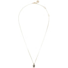 Skull pendant necklace from Alexander McQueen, with a signature coin on the clasp fastening, a delicate chain, engraved logo charm, and crystal accents.