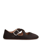 Signature Alaïa criss cross ballet flats inspired by classical Japonese shoes featuring a cross buckle straps. Crafted in haircalf leather.