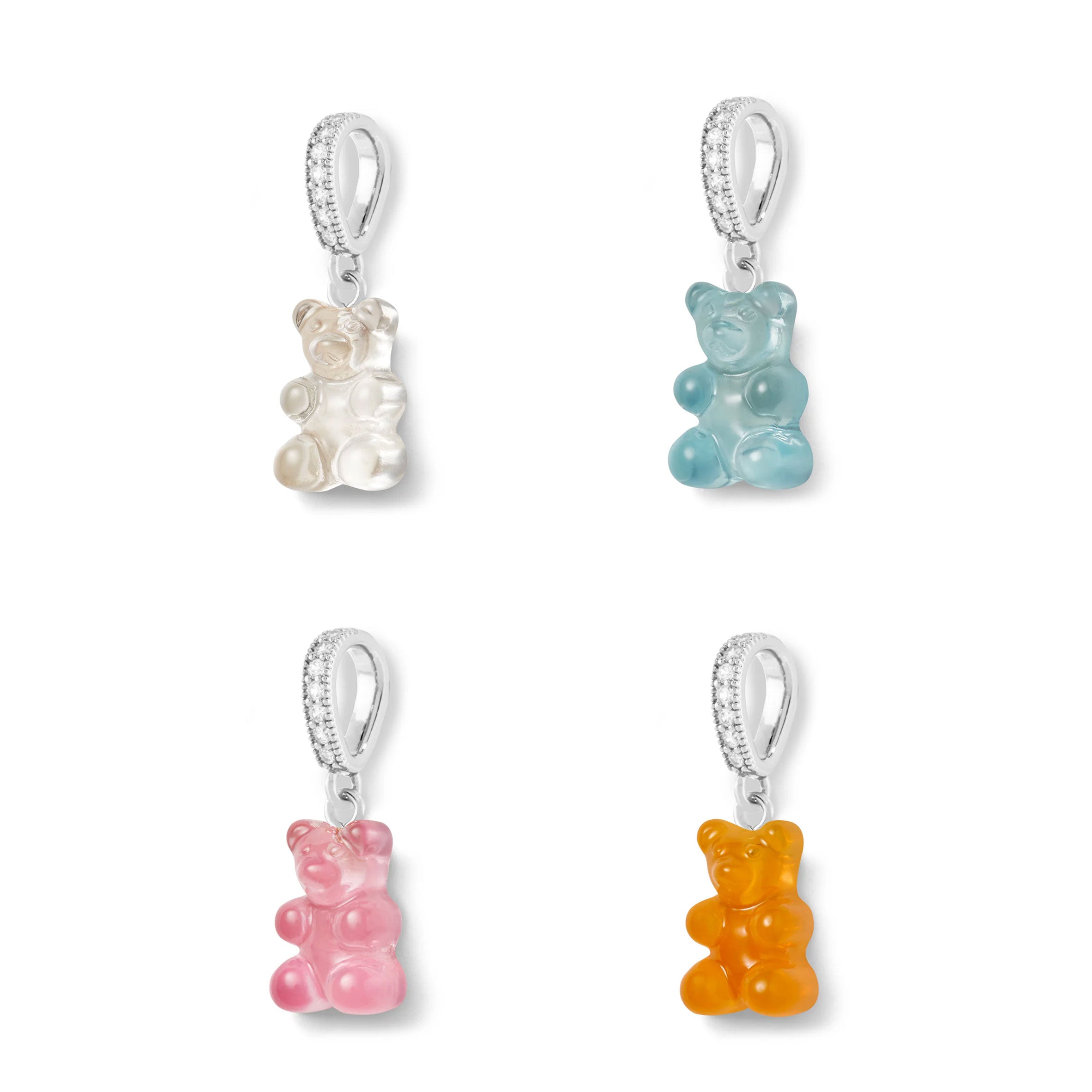 Nostalgia Bear Translucent Pendant, Pave Silver Connector