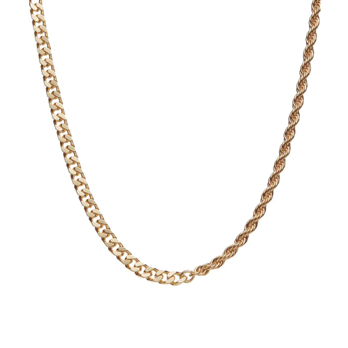 Mixed cable-link chain and rope chain with adjustable fit and clasp fastening