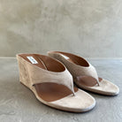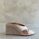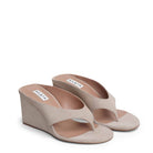 Alaïa's Thong Wedge featuring a distinctive cubic heel and realised in a suede fabric.