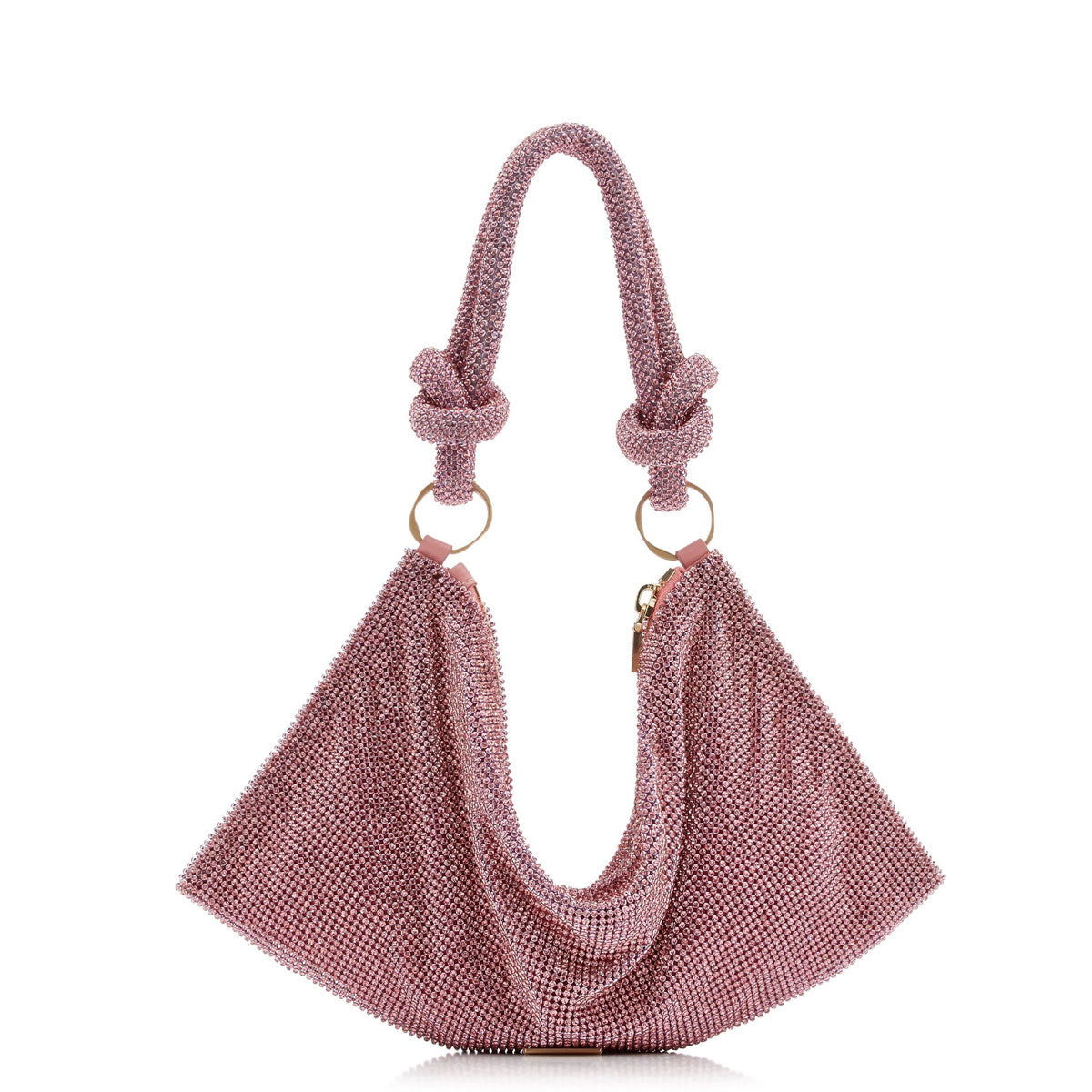 The Hera Shoulder, now available in an even smaller Nano. Crafted from eye-catching rhinestone that give a metallic silver shine, this classic design exudes femininity and grace with a knotted shoulder strap and a gorgeously slouchy silhouette. The frosted handheld bag is the perfect addition to add some Gaia sparkle to your life. Please note this size is much smaller than the Mini.