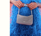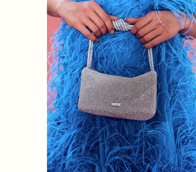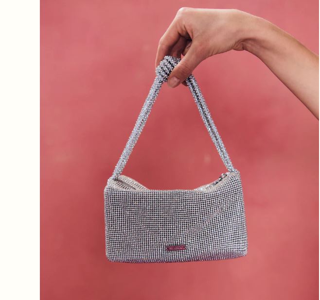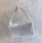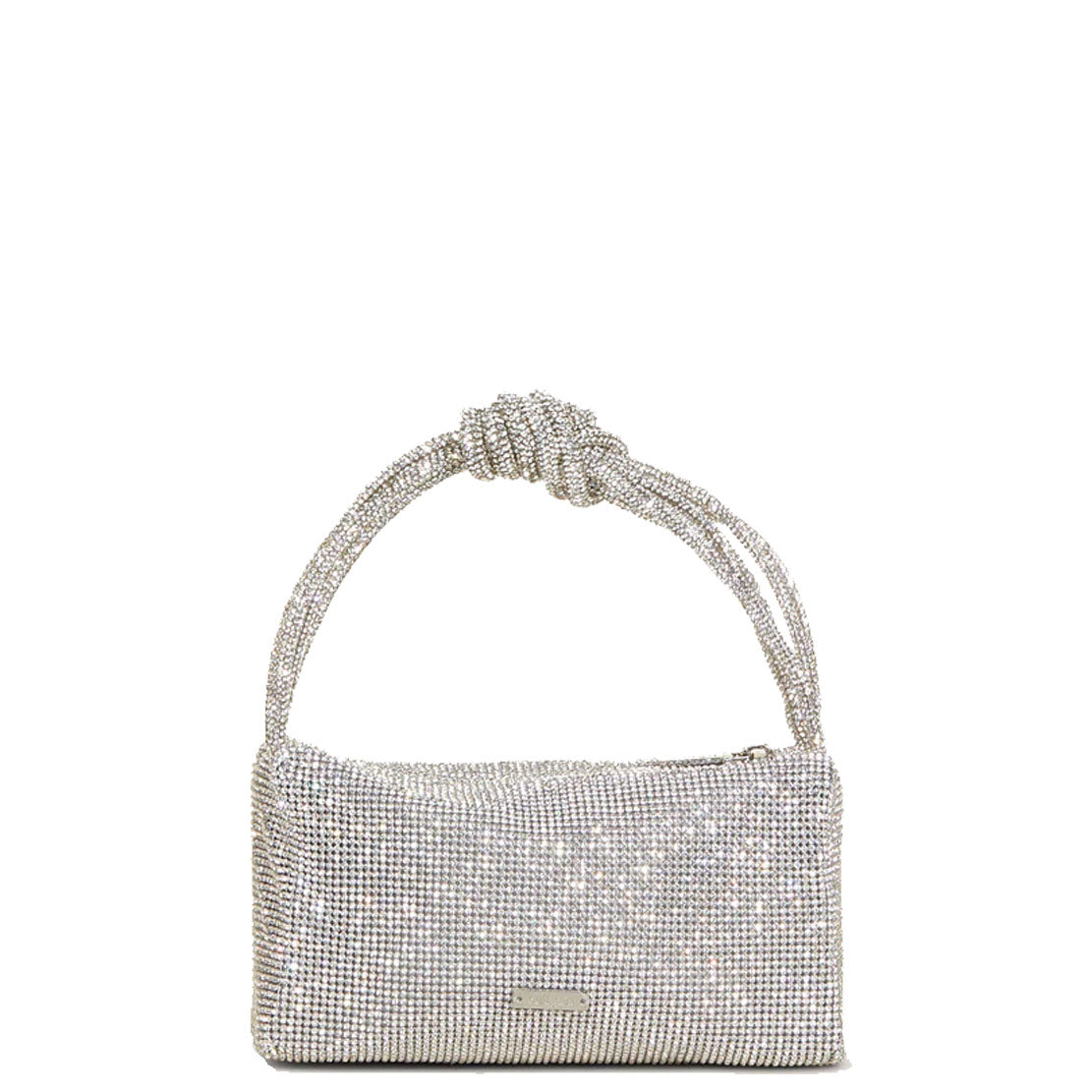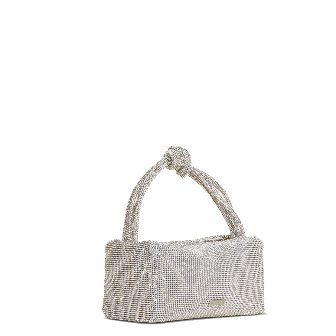 Sienna is an eye-catching mini sized top handle bag designed with glimmering 2mm rhinestone mesh. She features a rhinestone corded handle with a top knot detail. The textured handle is balanced by her relaxed boxy frame. She’s big enough to hold all your essentials and a silver-toned metal zipper with Cult Gaia logo keeps your essentials safe.