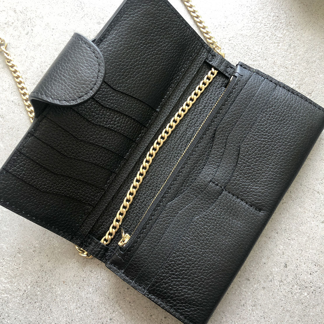 Elevate your Flip N Snap Maxi Wallet with our Flip N Snap Maxi Chain in solid brass. An adjustable length and clicker closure means you can update your go-to wallet immediately, ensuring luxurious wearability for all occasions.