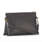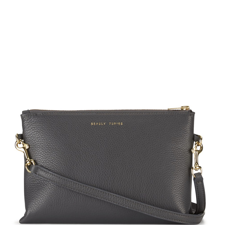This classic double-paneled clutch won’t have you thinking twice. Lightweight and compact, yet spacious enough for all your essentials, Mr Siamese transitions perfectly from day to night. Accompanied by a detachable, adjustable leather strap for casual and evening wear. Now available with a zip pocket on the reverse for easy access to your daily essentials. Exterior constructed from pebbled bovine leather. Interior made from 100% black cotton lining to reduce markings. Finished with polished brass hardware.