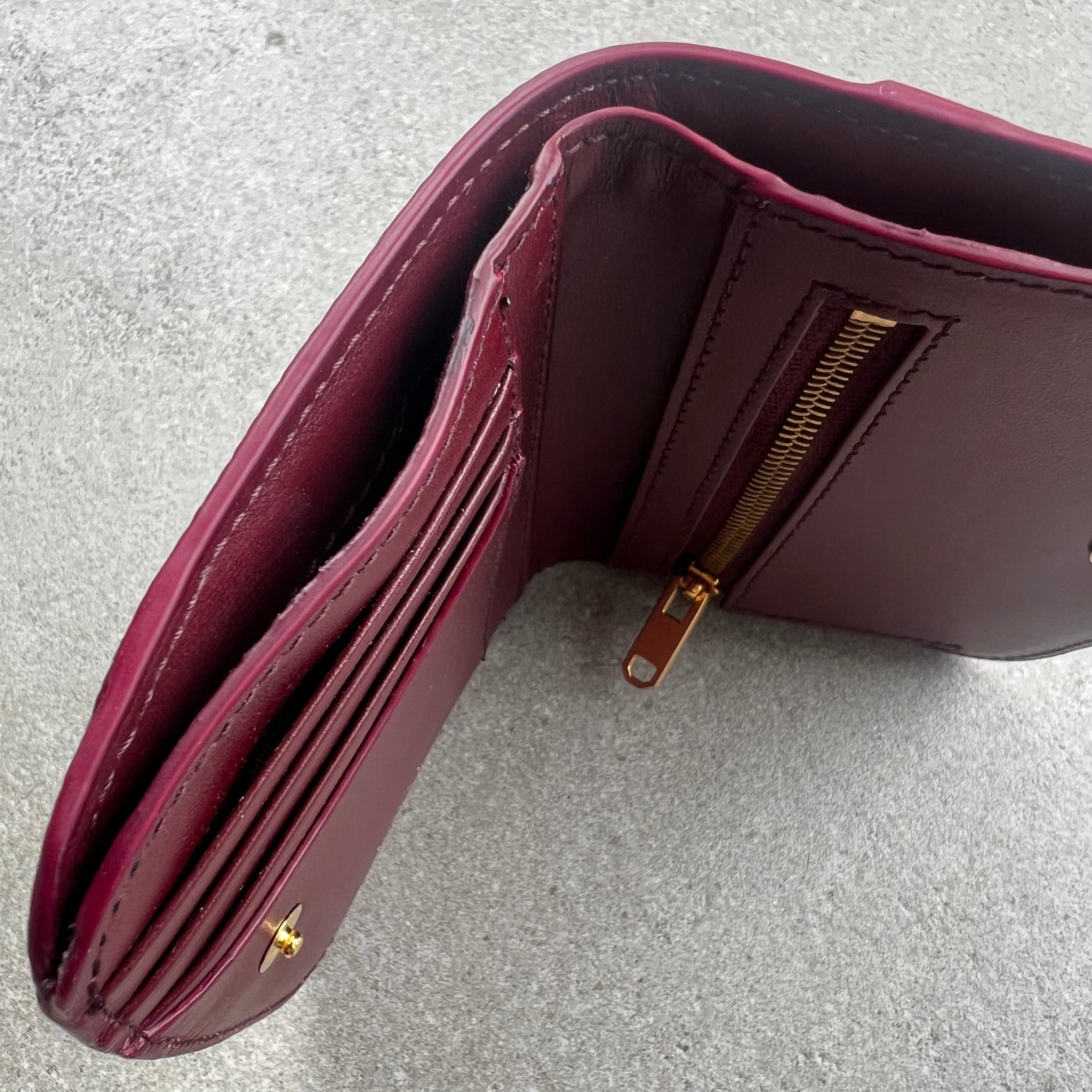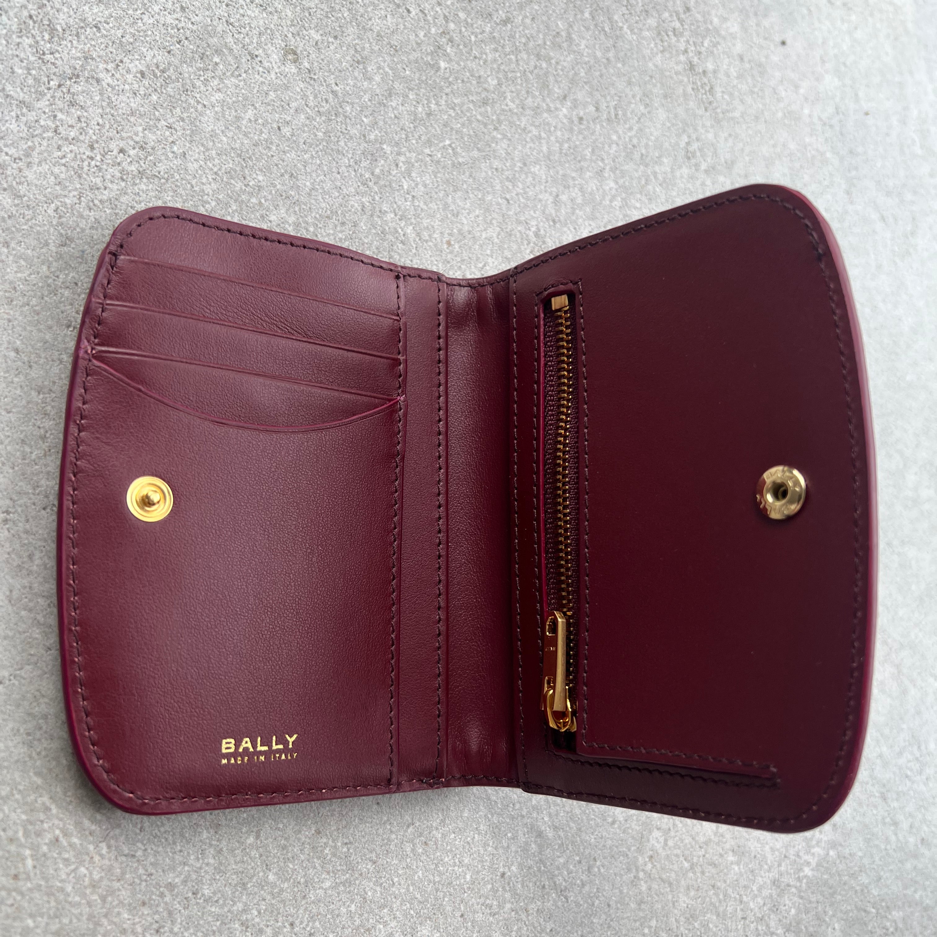 This Deco wallet in black calfskin features a simple metal plaque detailed with three engraved lines to recall the Bally Ribbon. On the inside, multiple compartments keep cash, coins and cards organized.