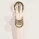 The Dehanche Helica Mixed Metal Belt is a handcrafted Italian accessory defined by sculptural elegance and modern versatility. Designed with 25K gold-plated and silver Zamak hardware, it is detailed with five ring adornments and refined carved accents for a subtle yet elevated statement.