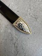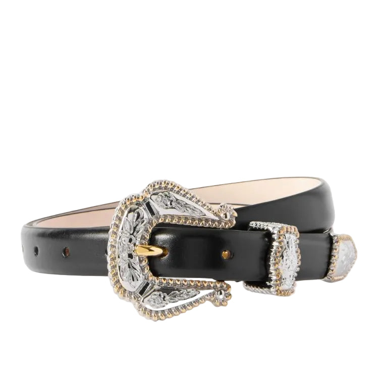 Déhanche brings a fresh, modern feel to everyday accessories with the Santo belt being a stylish take on classic Western designs. It features a detailed buckle with mixed gold and silver-tone hardware, along with a matching keeper and tip for a clean, finished look.