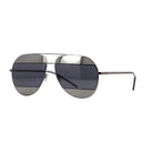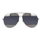 Dior reinterprets the classic aviator with graphic style. Gunmetal-tone mirror frame and bands on the lens create a graphic statement against the center grey lens.