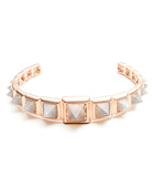 Eddie Borgo matte rose graduated gemstone pyramid cuff with matte grey agate hand cut gemstones and matte rose gold plated brass.