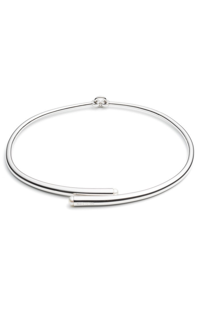 Pearl Hinged Choker plated in silver with freshwater pearl tips and adjustable hinge closure. Interior engraved logo.