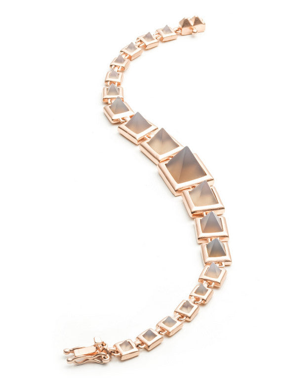 Eddie Borgo Graduated Gemstone Pyramid bracelet with matte grey agate hand cut gemstones and matte rose gold plated brass.
