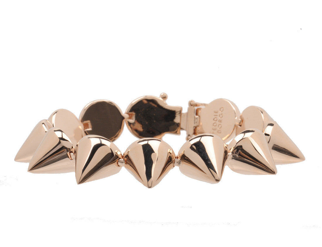 Medium Eddie Borgo rose gold plated cone bracelet. Designer-stamped tag at back. Push clasp and Hook fastening. Rose gold plated brass.