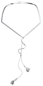 Pave Bud Drop Necklace. Pavé Bud Drop Necklace plated in silver with structured collar , vine-like tendrils, and handcut pavé rose buds on a delicate chain.