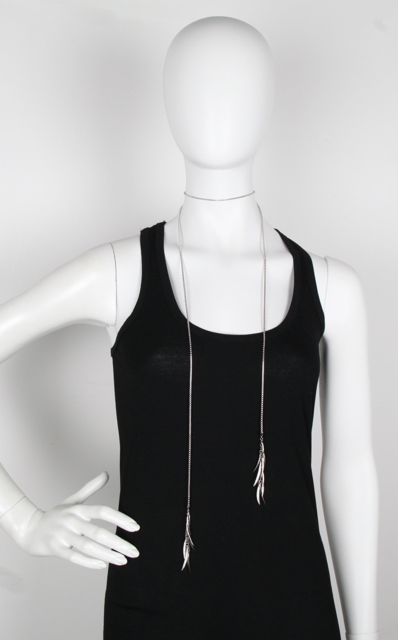 Pavé Prickle Scarf plated in silver is a wrap necklace with fluid high shine and handcut pavé crystal prickles at each end.