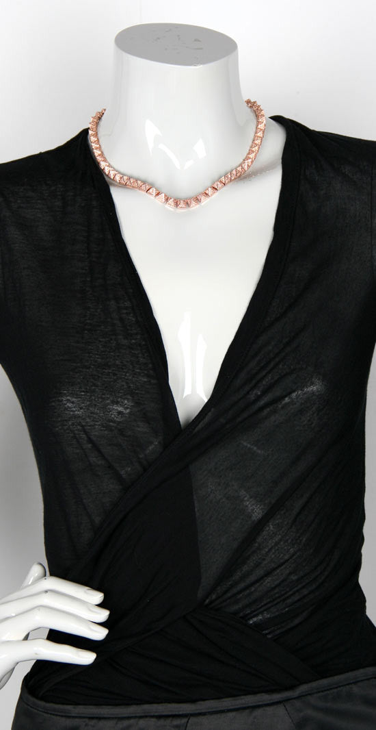 Eddie Borgo shine rose gold plated brass pyramid necklace champagne coloured pave crystals. Designer stamp at reverse. Push clasp fastening with two side clips to secure.